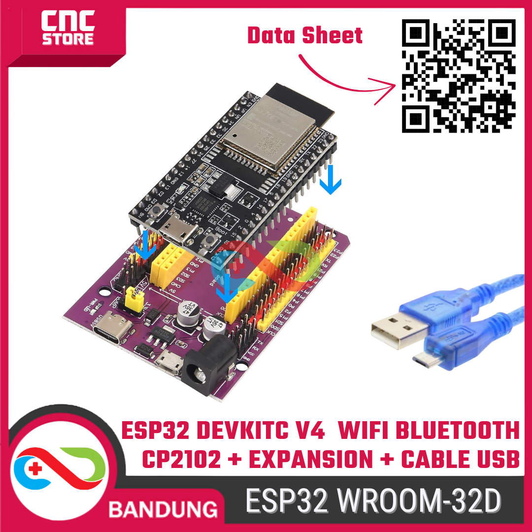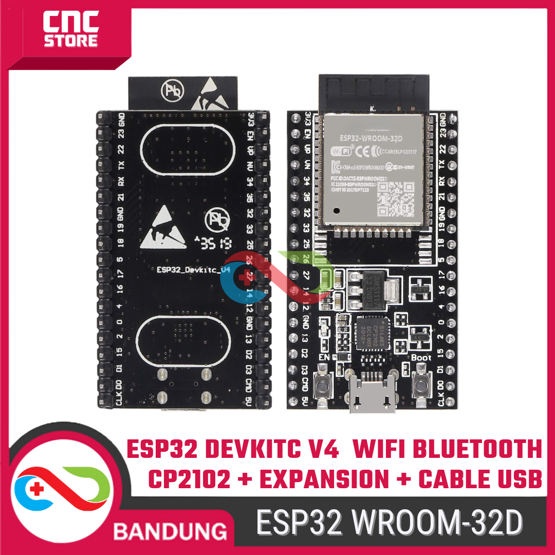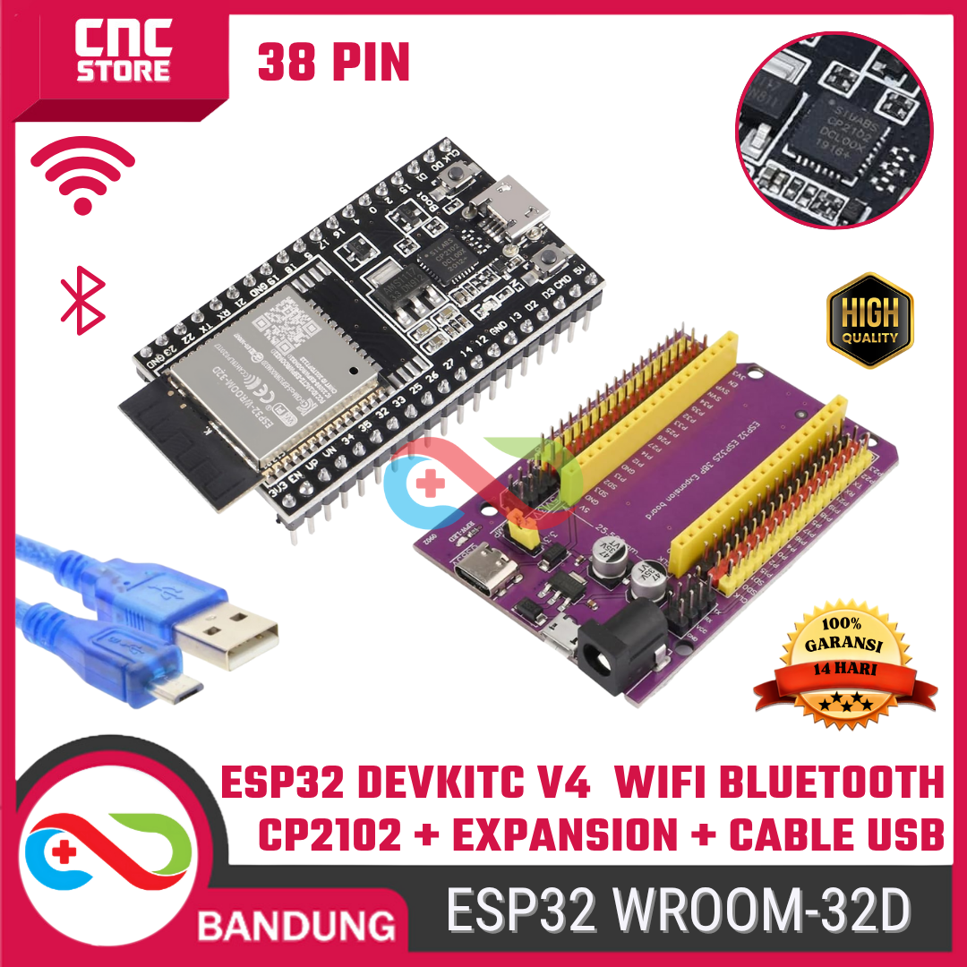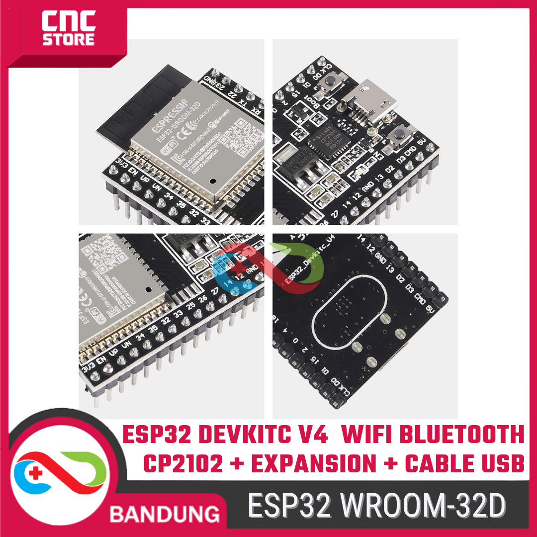 Paket Lengkap ESP32 DevKitC V4 WROOM-32D – WiFi Bluetooth IoT Development Board with USB Cable & Expansion Module