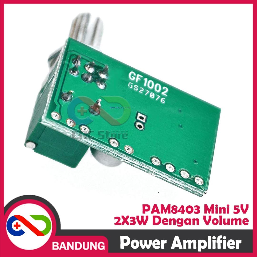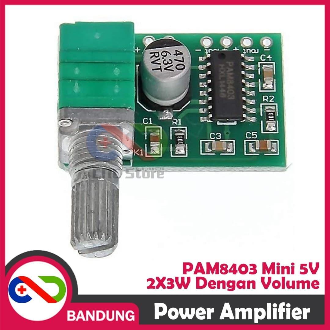 PAM8403 adalah chip digital amplifier stereo (penguat class D) yg berukuran kecil, menghasilkan suara high-fidelity (HiFi) dengan output 3W+3W (stereo).
