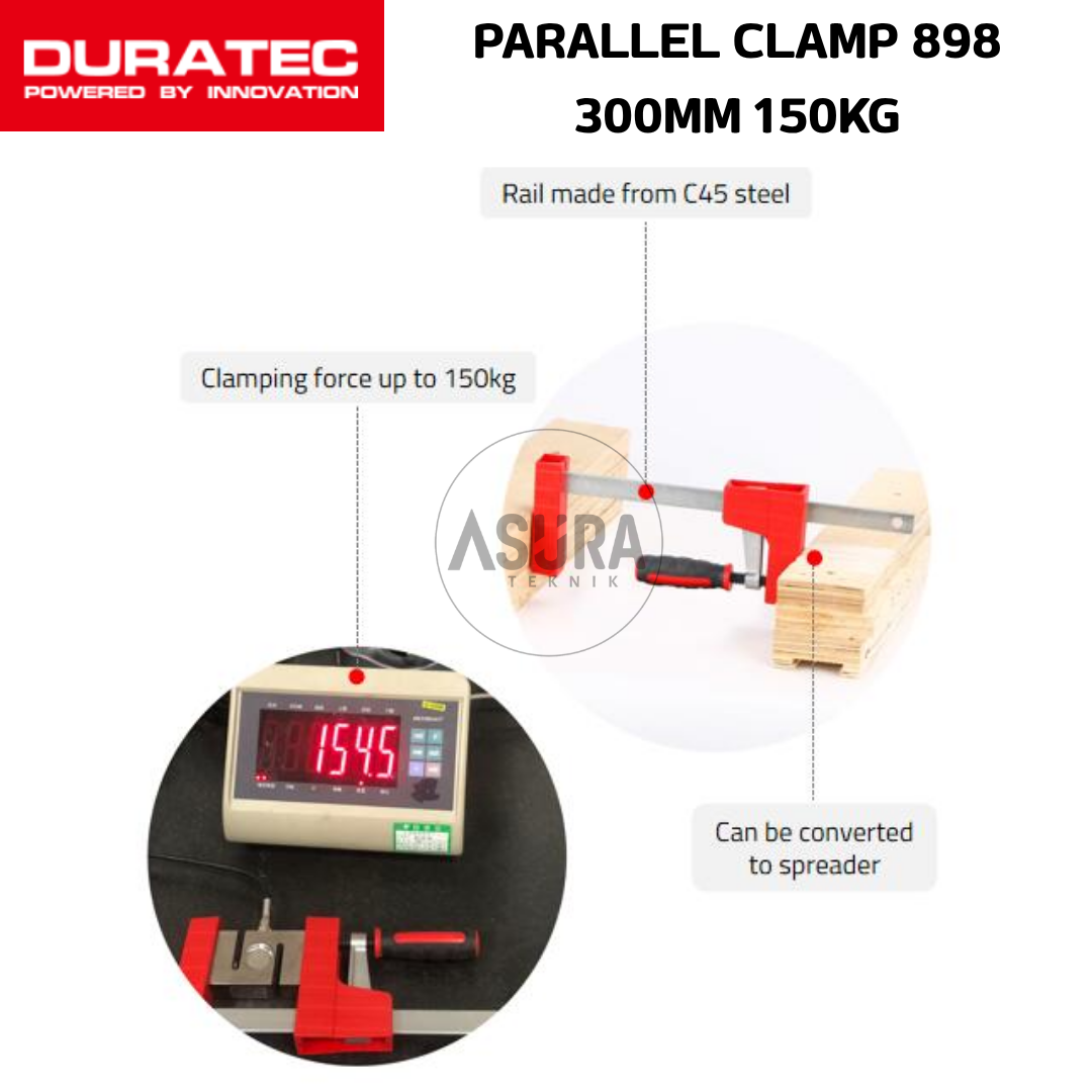 Halo BrotherWood Squad! Kalau di dunia bola ada bek tengah yang siap nahan gempuran lawan sekuat apa pun, di lapangan tukang ada Parallel Clamp 898 Duratec. Pegangan baja tangguh ini punya kekuatan sampai 150kg – siap ngunci bahan kerja kamu rapat, stabil, dan nggak bakal lepas, bahkan di proyek paling keras sekalipun!