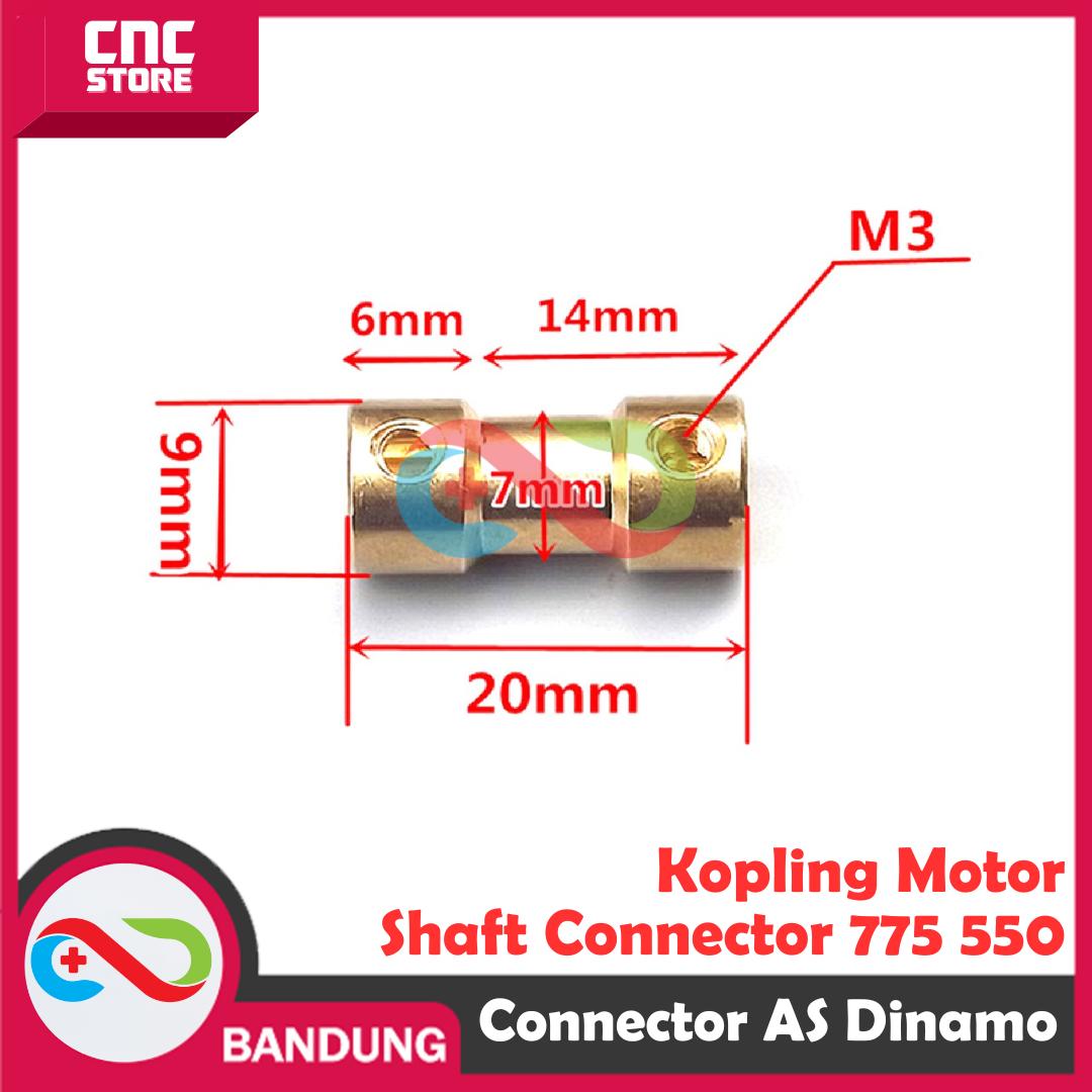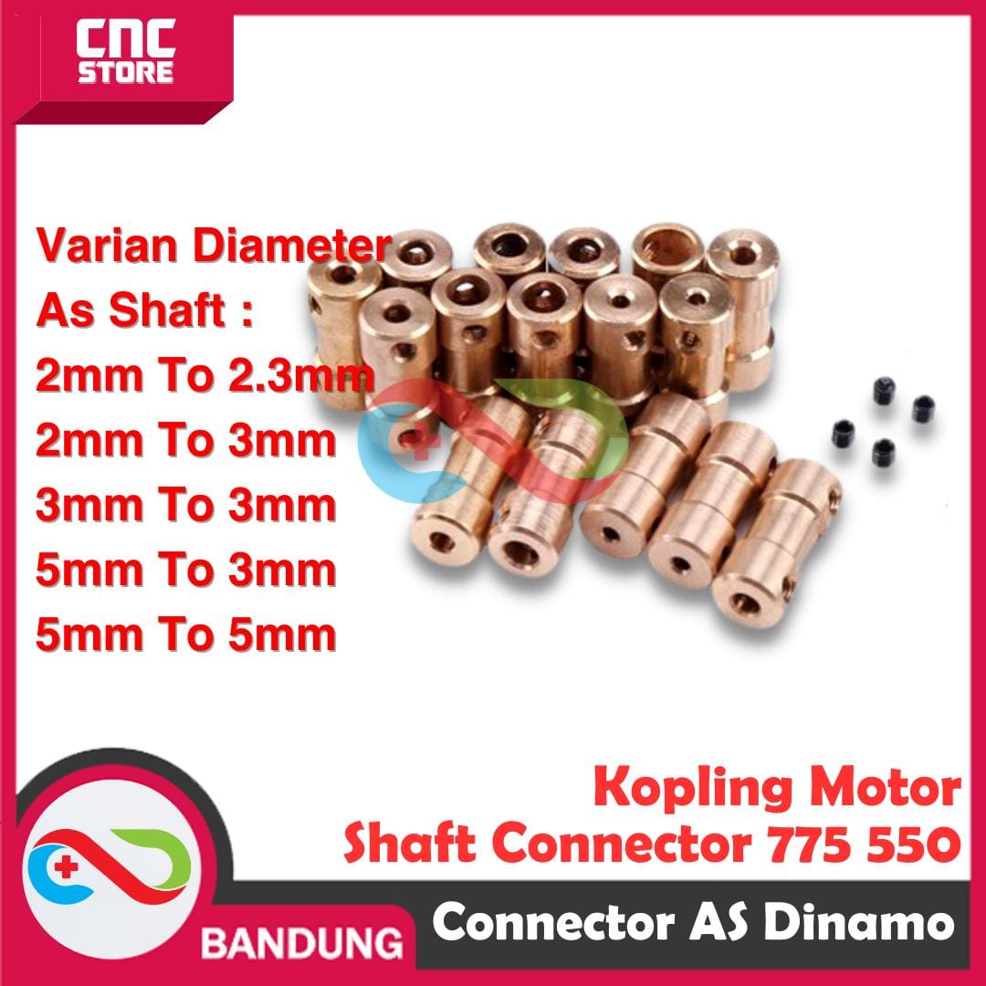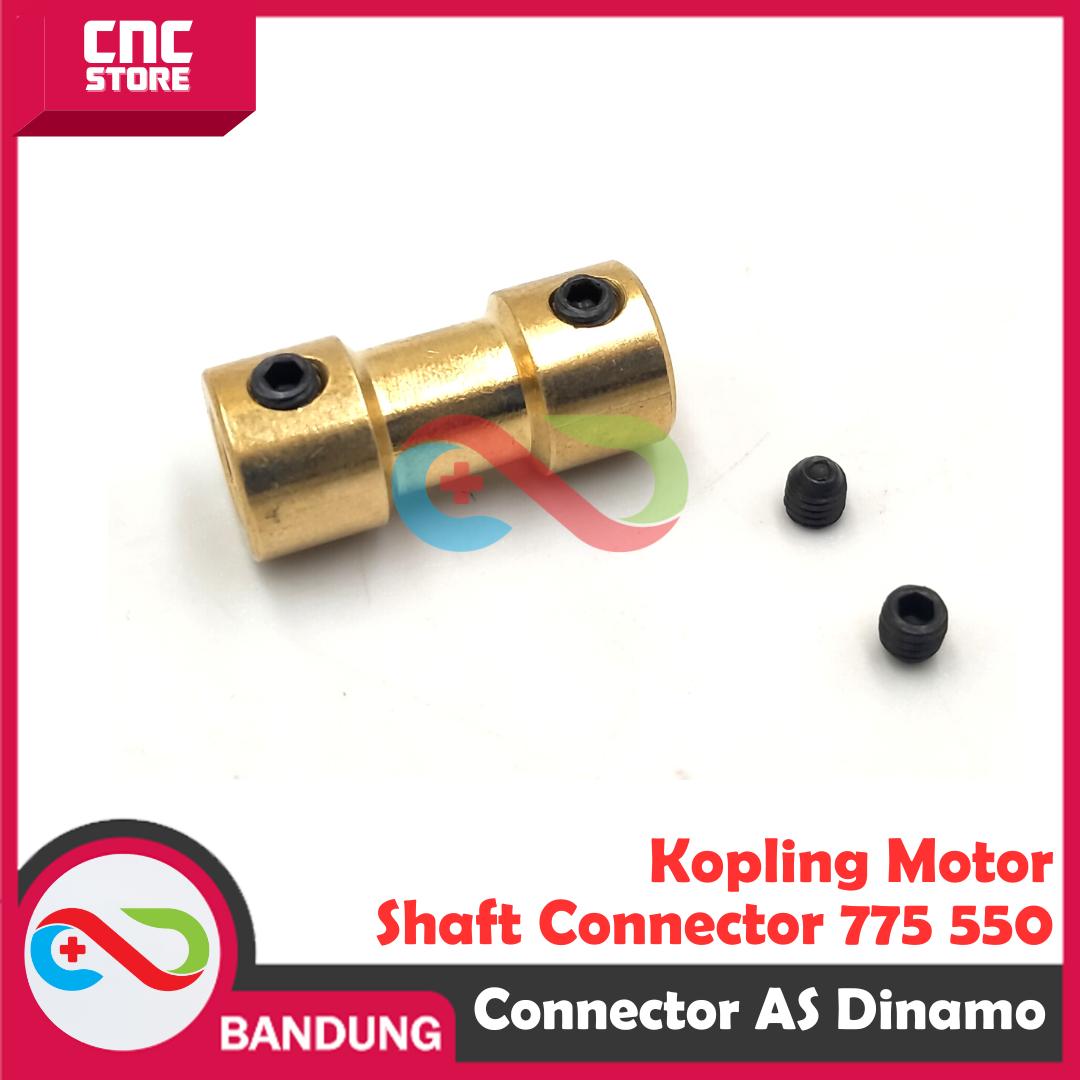 Penghubung Konektor AS Dinamo Kuningan untuk motor dengan tipe 775, 550, dan 130. Konektor ini berfungsi sebagai penghubung antara poros motor dengan kopling, memungkinkan transmisi tenaga yang efisien dari motor ke mekanisme lainnya.