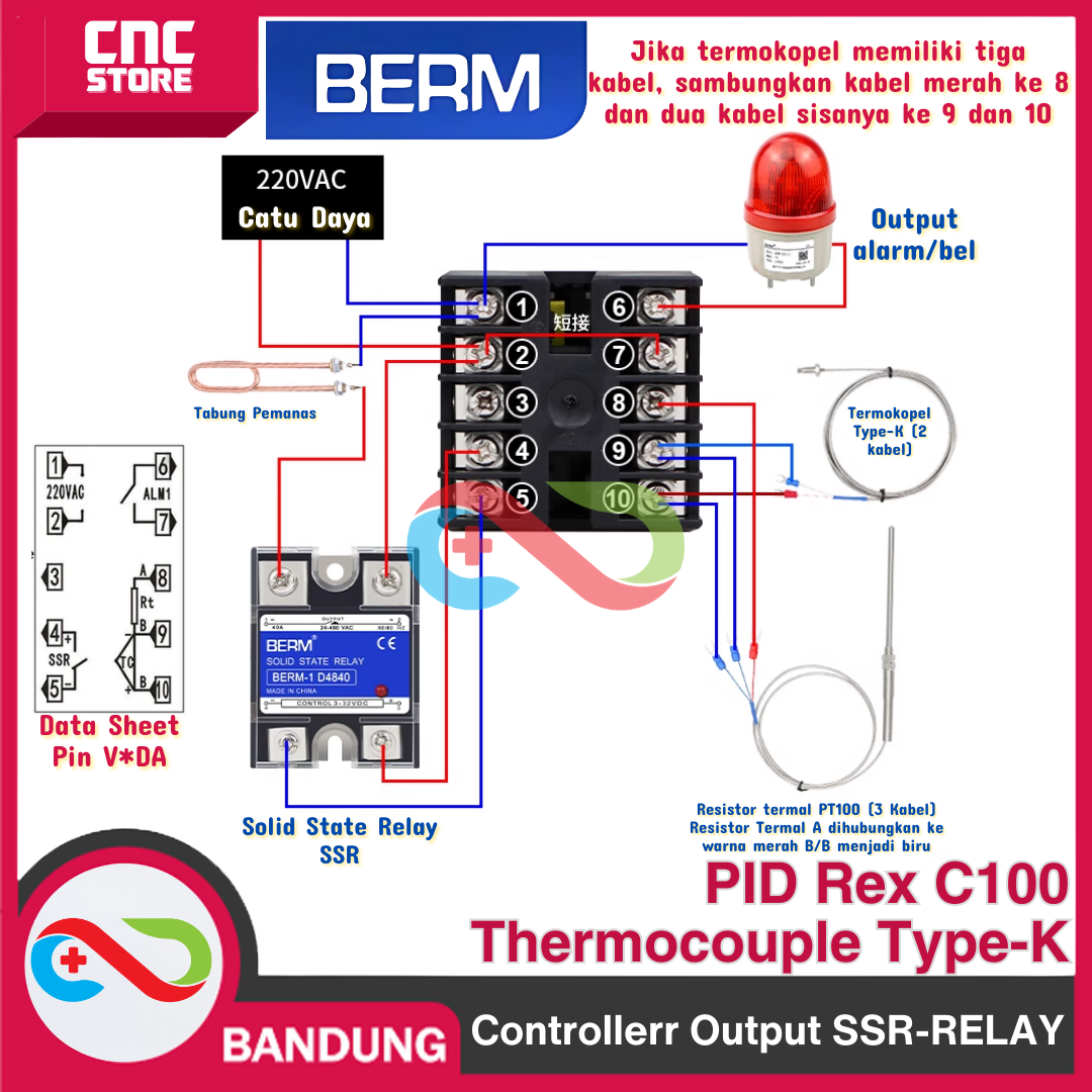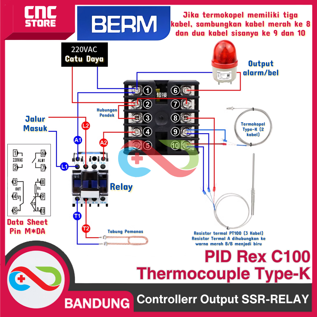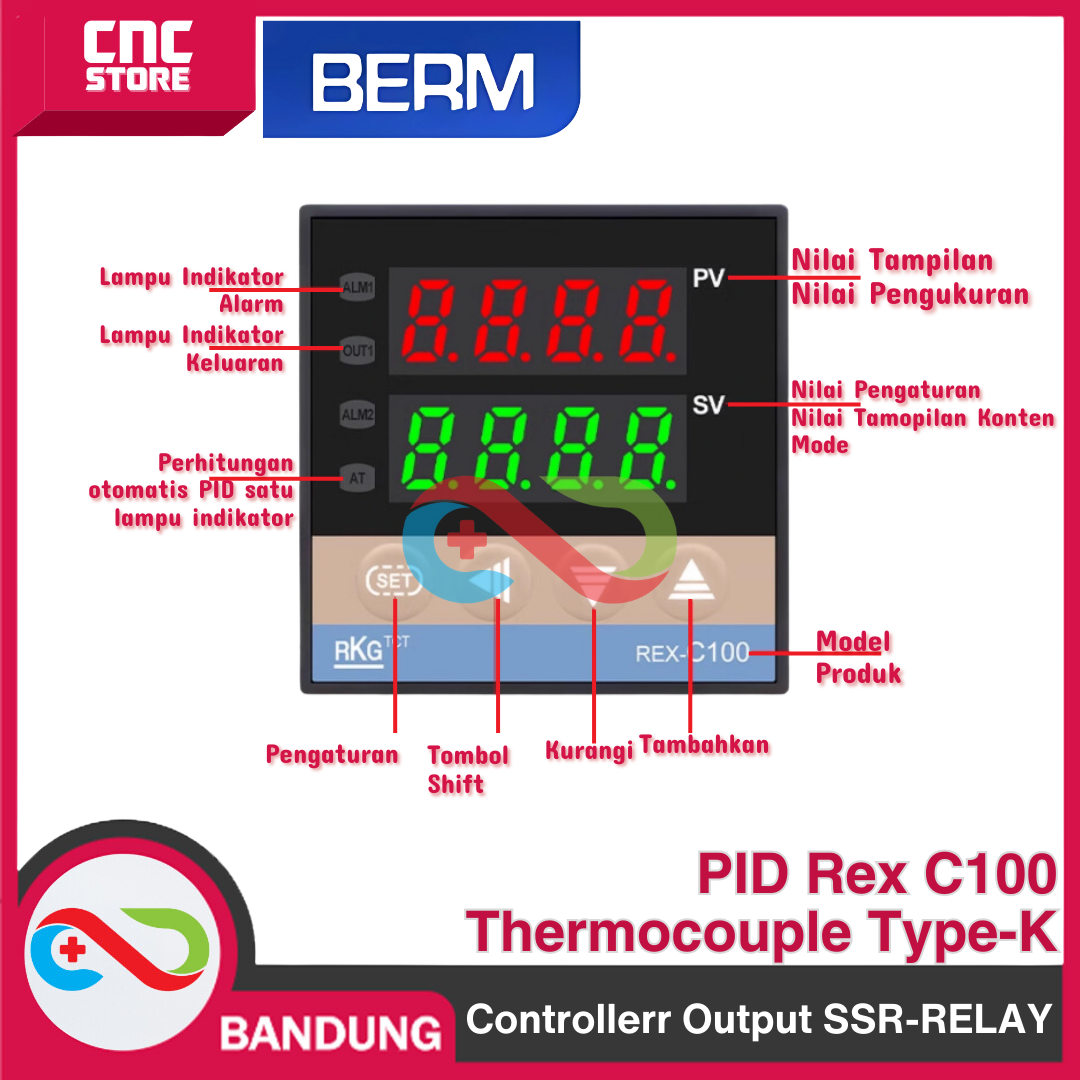 PID Rex C100 C-100 Thermocouple Type-K Controller Output SSR-RELAY REX-C100FK02 M*DA dan REX-C100FK02 V*DA adalah pengendali suhu presisi tinggi yang digunakan untuk mengatur dan mempertahankan suhu pada tingkat tertentu secara otomatis dalam berbagai aplikasi industri ataupun laboratorium.