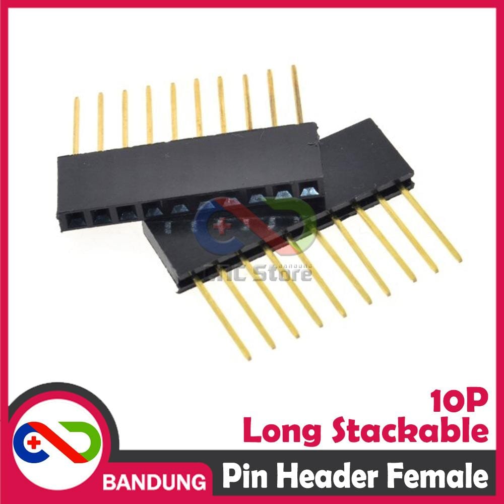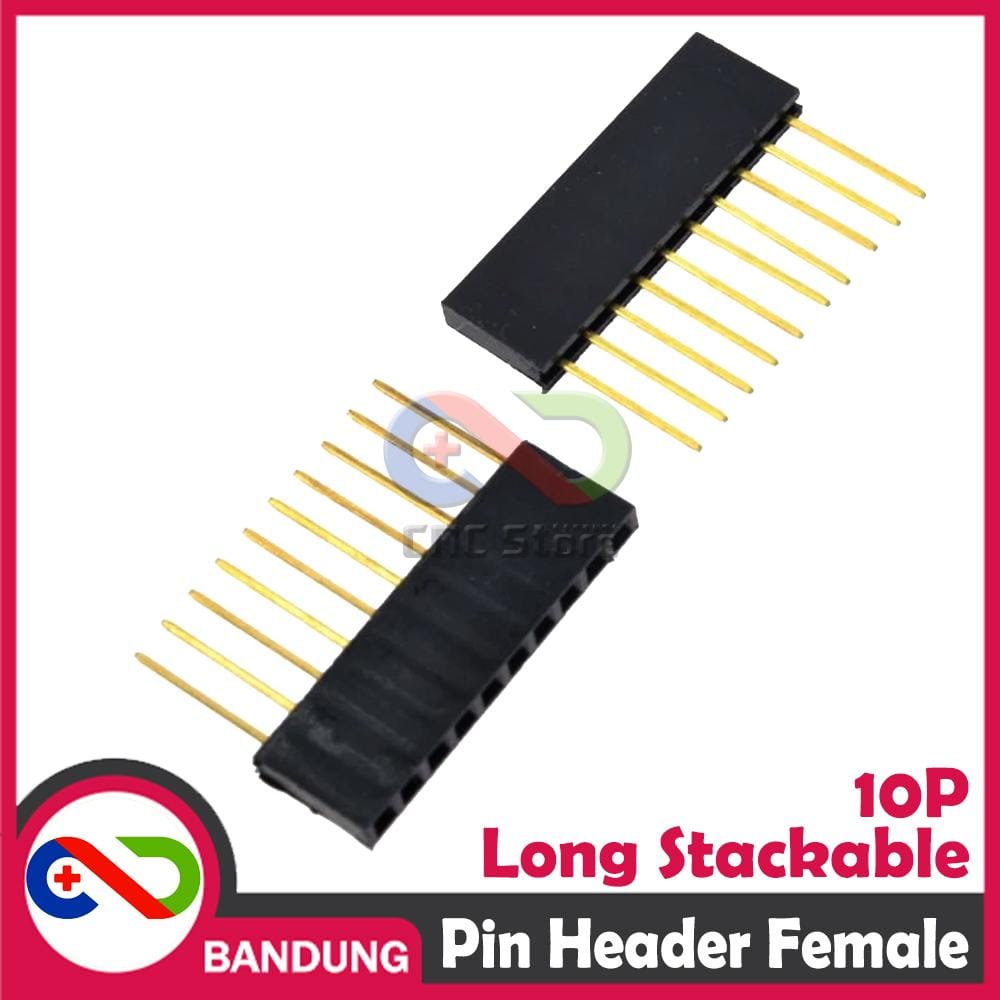 Kalo agan pengen bikin shield sendiri, yang bisa PnP sama arduino UNO atau MEGA, maka gunakan pin header ini. Terdapat header female 10 pin dengan kaki yang panjangnya 10mm sehingga memungkinkan untuk ditumpuk diatas UNO agan.