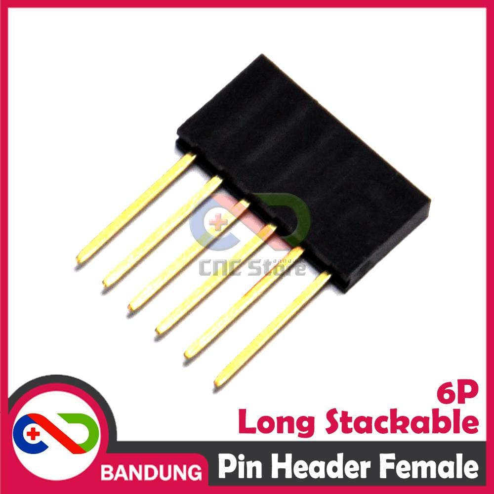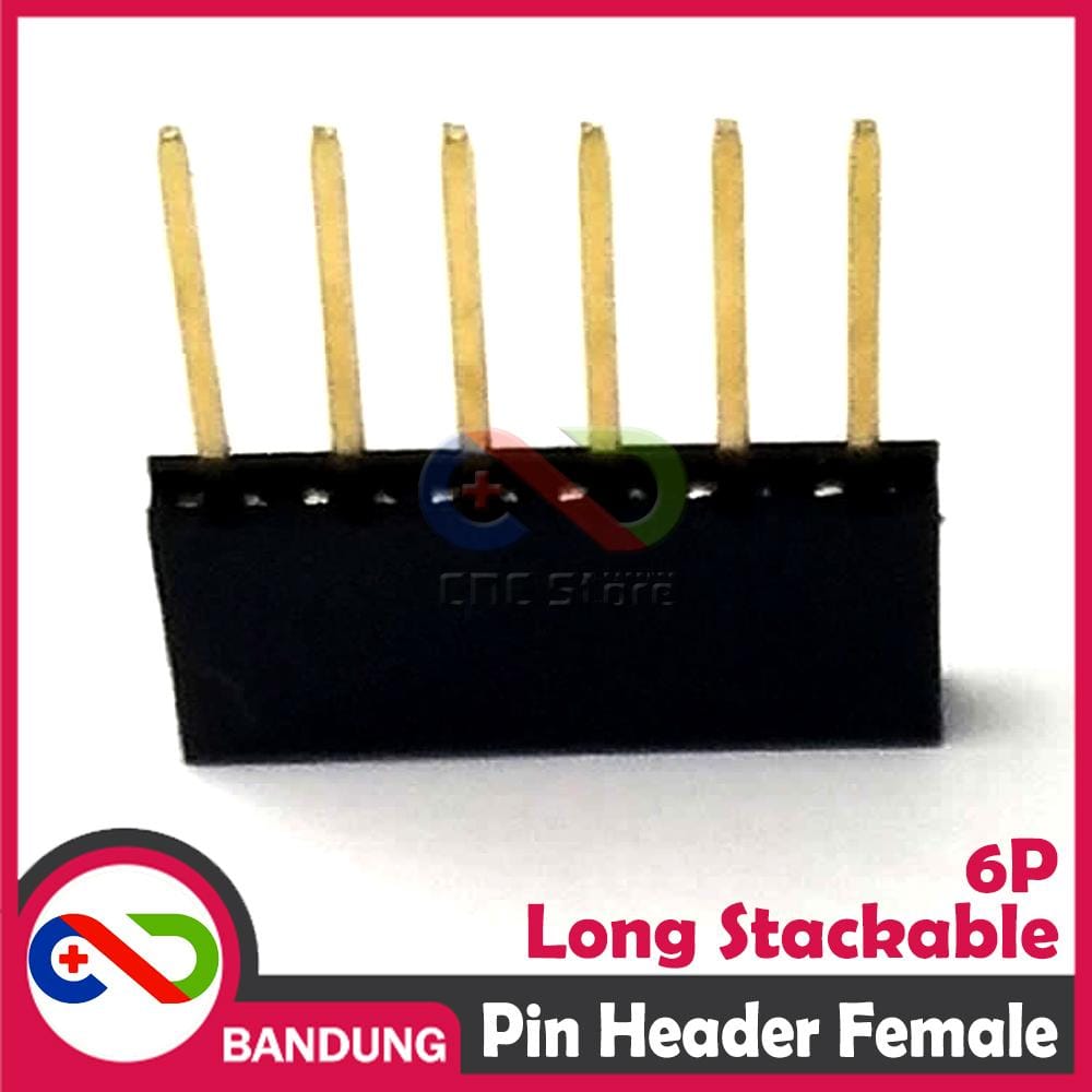 Kalo agan pengen bikin shield sendiri, yang bisa PnP sama arduino UNO atau MEGA, maka gunakan pin header ini. Terdapat header female 6 pin dengan kaki yang panjangnya 10mm sehingga memungkinkan untuk ditumpuk diatas UNO agan.