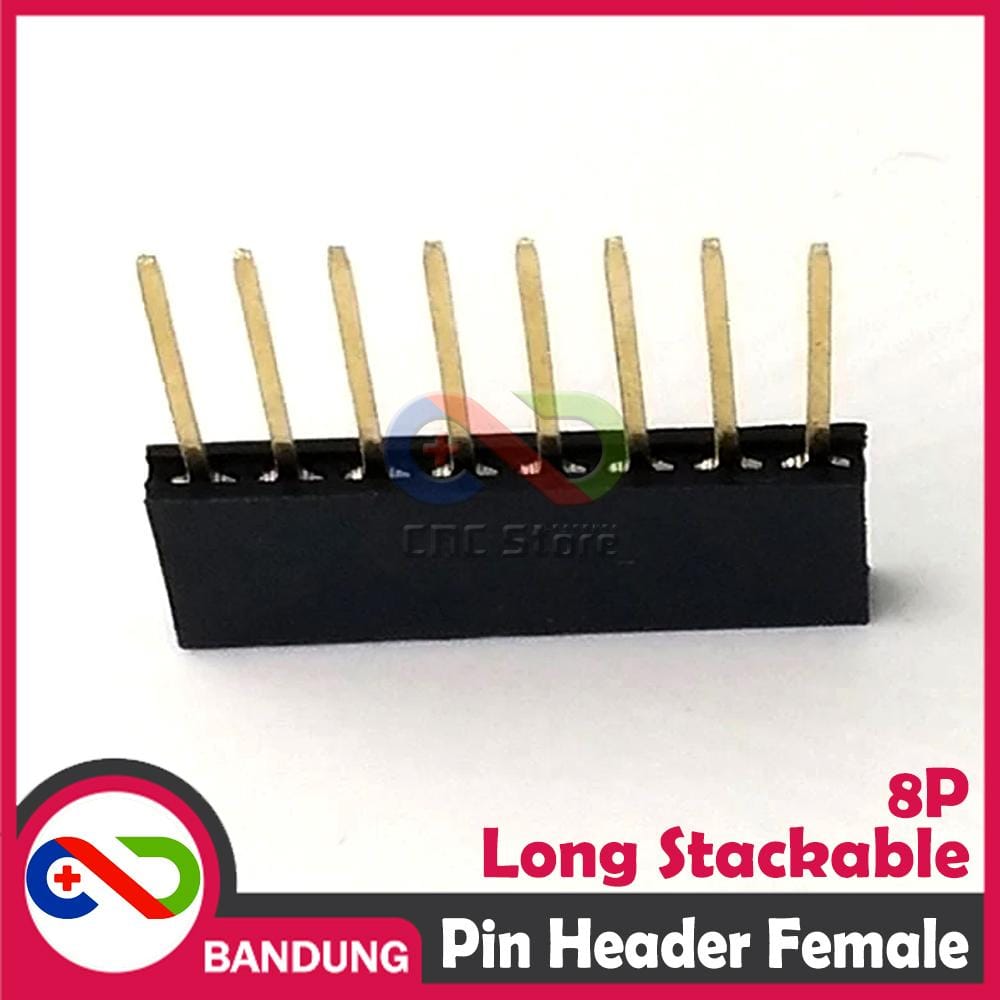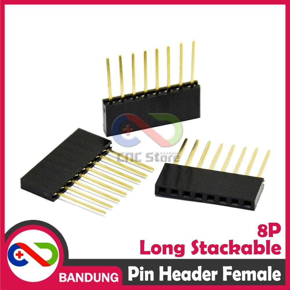 Kalo agan pengen bikin shield sendiri, yang bisa PnP sama arduino UNO atau MEGA, maka gunakan pin header ini. Terdapat header female 8 pin dengan kaki yang panjangnya 10mm sehingga memungkinkan untuk ditumpuk diatas UNO agan.