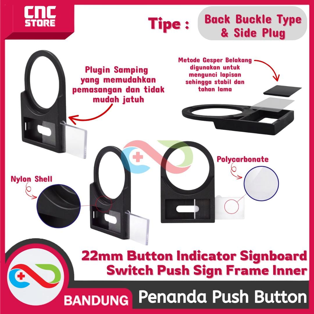 Buat kamu yang lagi cari penanda/label nama untuk push button dengan diameter 22mm, produk ini cocok untuk kamu nih ><=========DESKRIPSI :* Warna : Hitam * Diameter Lubang : 22mm? * Bahan : Nylon * Model : Pemasangan dari samping (Side Plug) dan Pemasangan dari belakang (Back Buckle Type)========APLIKASI :* Cocok untuk penanda atau pemberian label nama pada push button dengan diameter 22mm * Bisa juga untuk penanda atau pemberian label nama pada pilot lamp dan selector switch dengan diameter 22mm