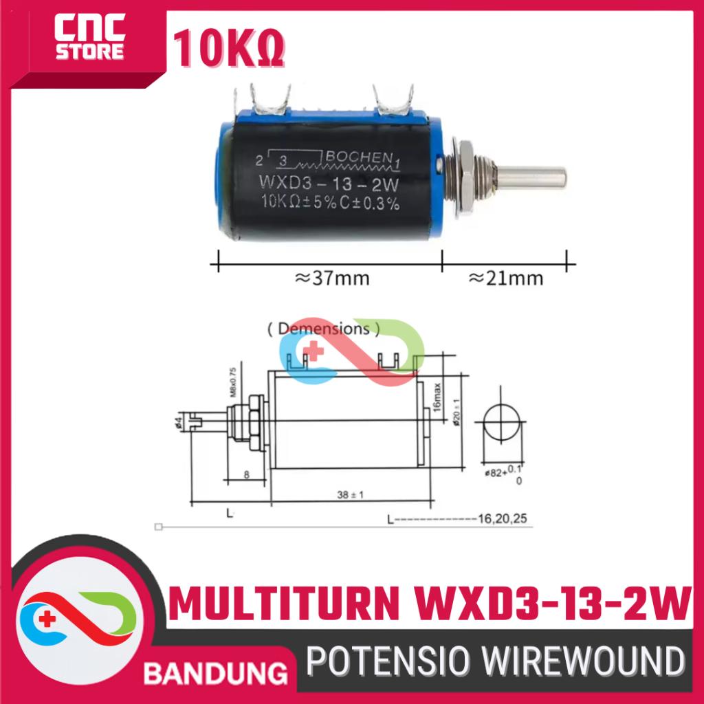 1Pcs Potensiometer Potensio Wirewound 10K Presisi Multiturn WXD3-13-2W 2W ? Untuk Pengaturan Daya Elektronik