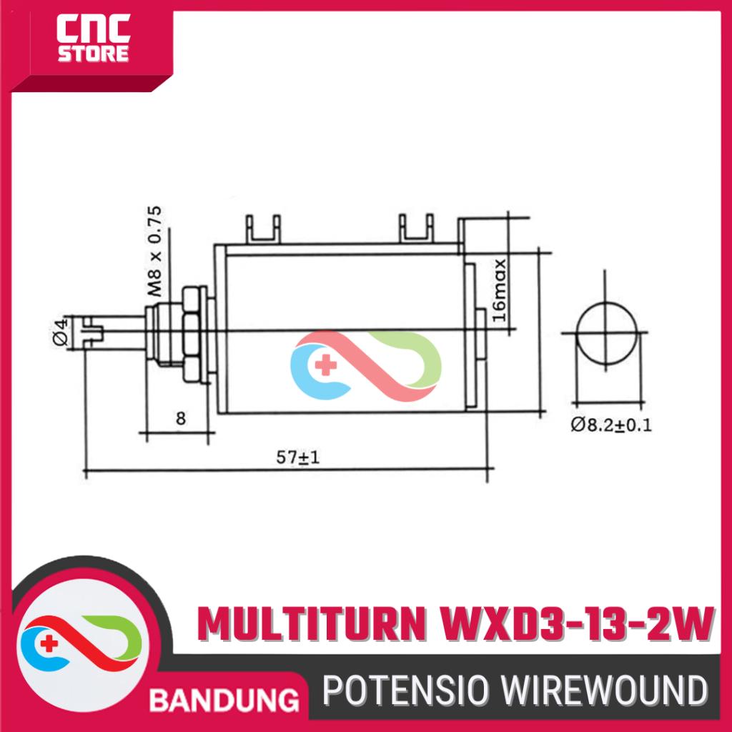 Potensiometer wirewound multiturn adalah jenis potensio yang memiliki beberapa putaran (dari resistansi 0 sampai maximum) sehingga sangat presisi, dibandingkan dengan potensio sekali putaran. Banyak digunakan untuk micro adjustment baik voltage, sensor, frekwensi, radio maupun modul elektronik yang memerlukan tingkat presisi yang tinggi. ?Dilengkapi dengan teknologi wirewound (kawat gulung), potentiometer ini menawarkan stabilitas tinggi dan keandalan dalam penggunaan jangka panjang, membuatnya ideal untuk aplikasi audio, sensor, kalibrasi, dan proyek presisi tinggi.