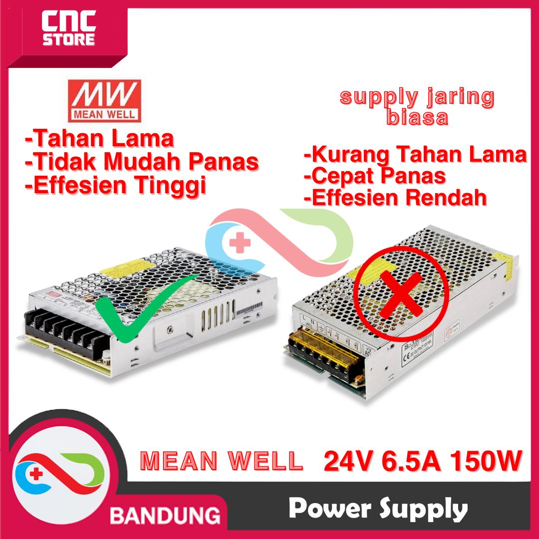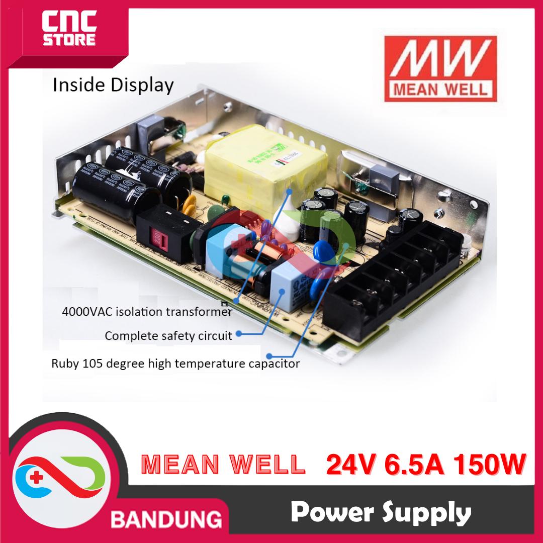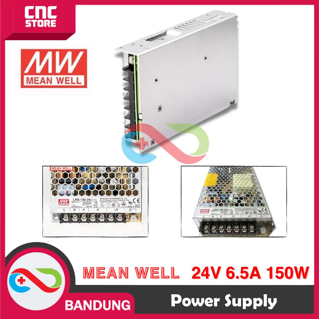 Power Supply Mean Well ?LRS-150-24. Power supply yang kompak dan efisien ini dirancang untuk memberikan output DC 24V yang stabil dengan arus 6.5A dan total daya output sebesar 150 watt. ?