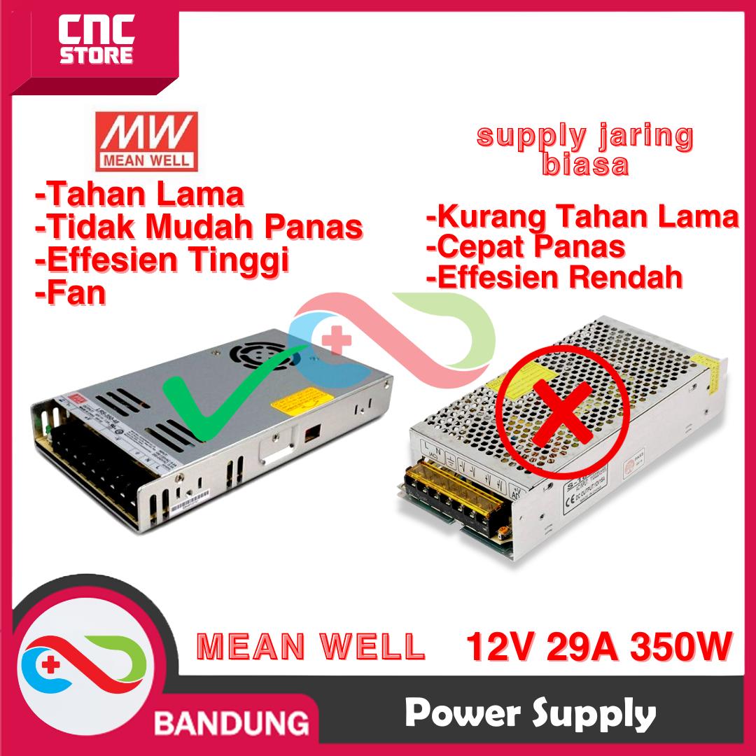 Power Supply Mean Well LRS-350-12 . Power supply yang kompak dan efisien ini dirancang untuk memberikan output DC 12V yang stabil dengan arus 29A dan total daya output sebesar 350 watt. ?