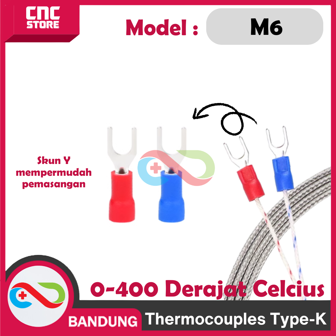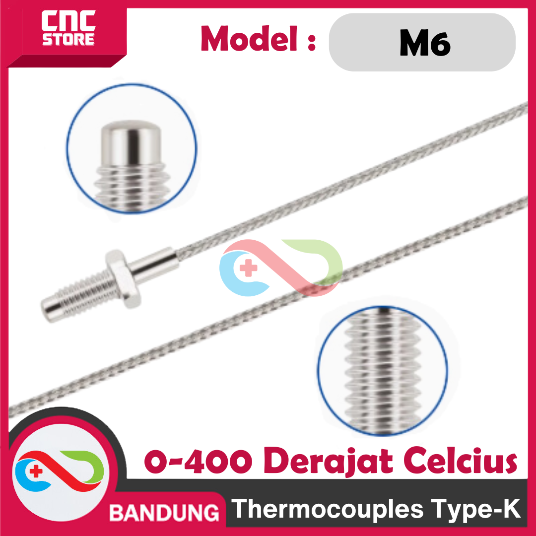 PROB Thermocouple TYPE-K Termokopel SENSOR SUHU TINGGI 0-400 M6 DERAJAT CELCIUS TERMOSTAT Thermostat adalah sensor suhu presisi tinggi yang dirancang untuk mendeteksi suhu pada aplikasi dengan rentang suhu yang luas. Sensor ini menggunakan teknologi Type-K thermocouple, yang dikenal karena akurasi dan respons cepat dalam pengukuran suhu tinggi. Dengan ulir M6, produk ini mudah dipasang dan sangat cocok untuk berbagai aplikasi industri maupun eksperimen laboratorium.