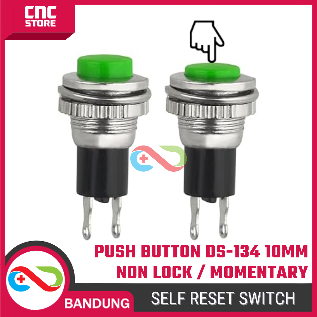 Push Button DS-134 10mm Non Locking / Self Reset / Momentary– Tombol Reset Warna Merah & Hijau untuk Proyek Elektronika dan Arduino
