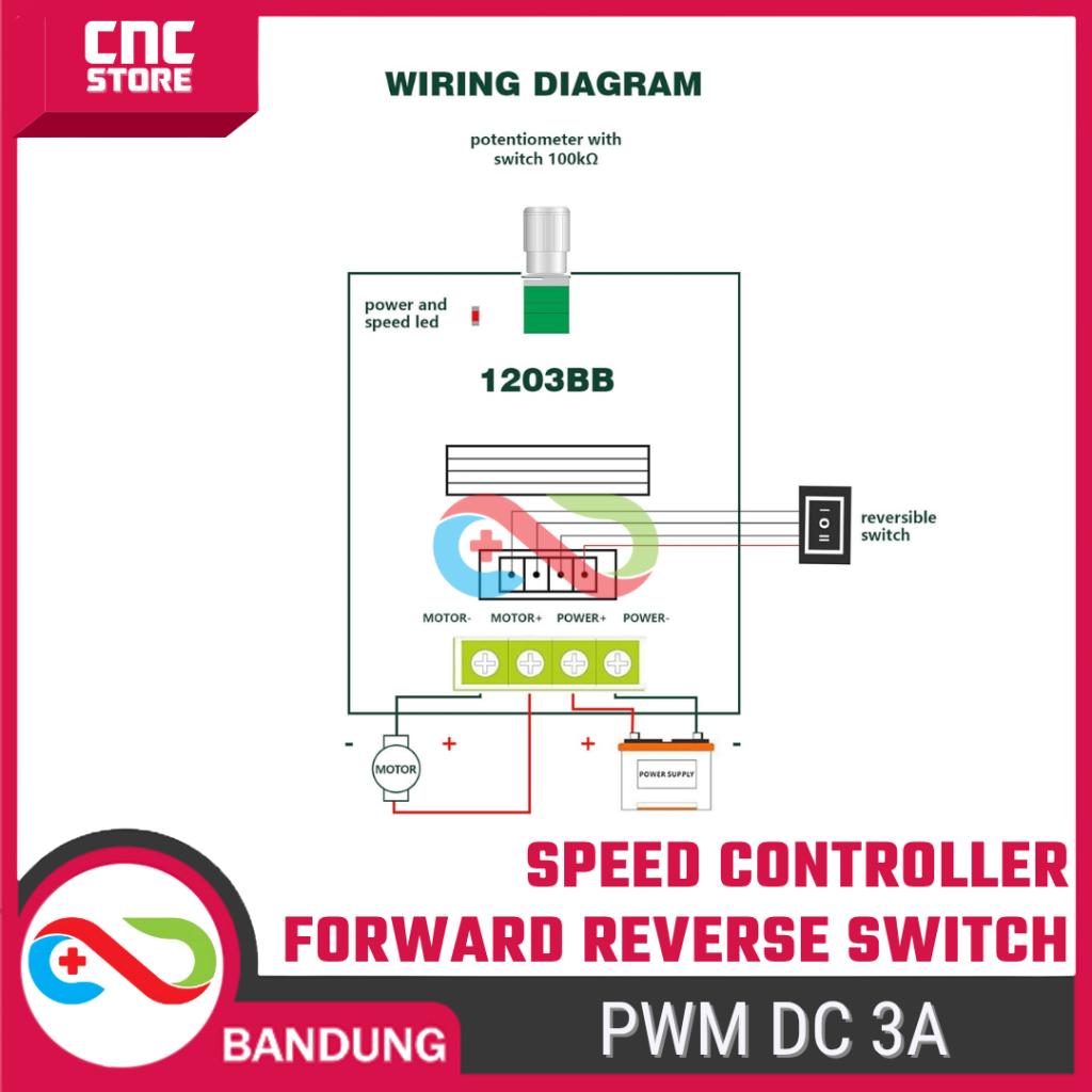 PWM DC Kontrol Kecepatan Motor DC 6V 12V 24V 3A – PWM + Switch Bolak-Balik