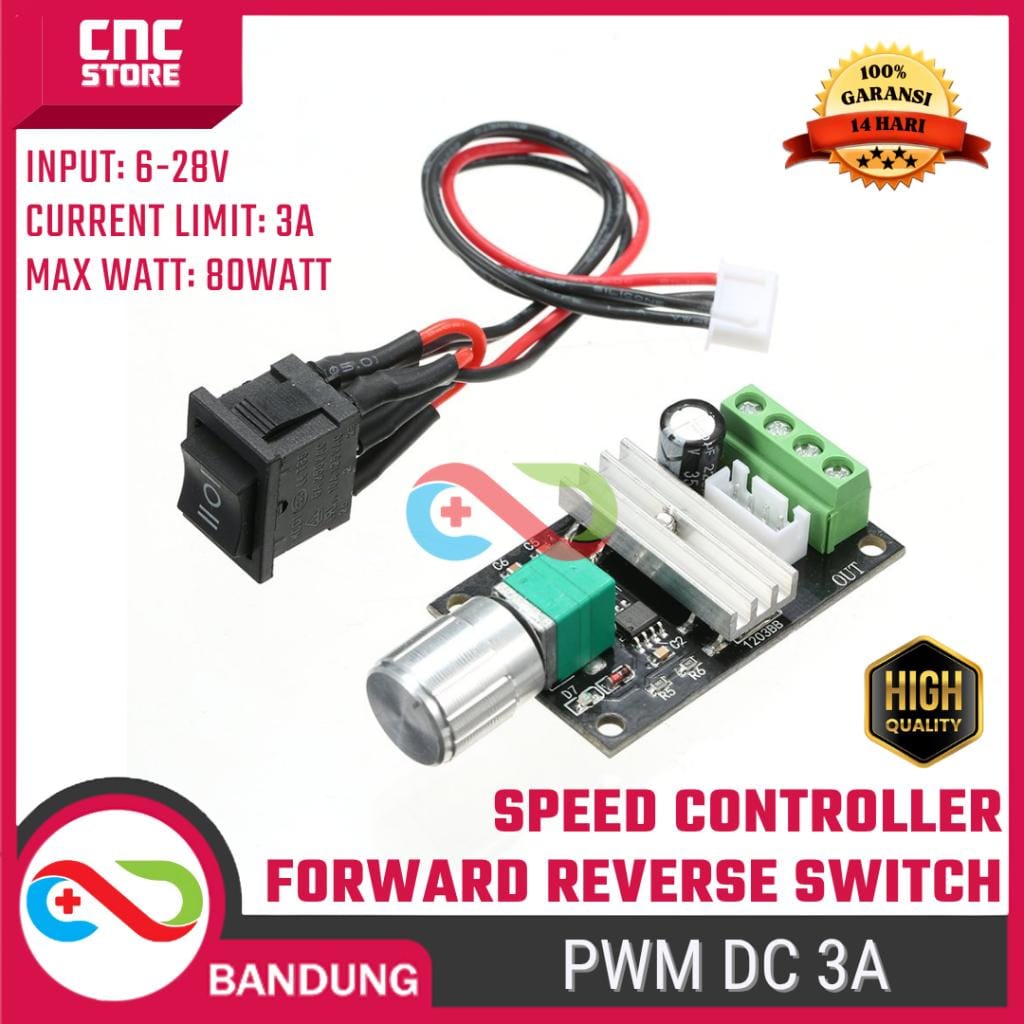 Be the first to review “PWM DC Kontrol Kecepatan Motor DC 6V 12V 24V 3A – PWM + Switch Bolak-Balik”