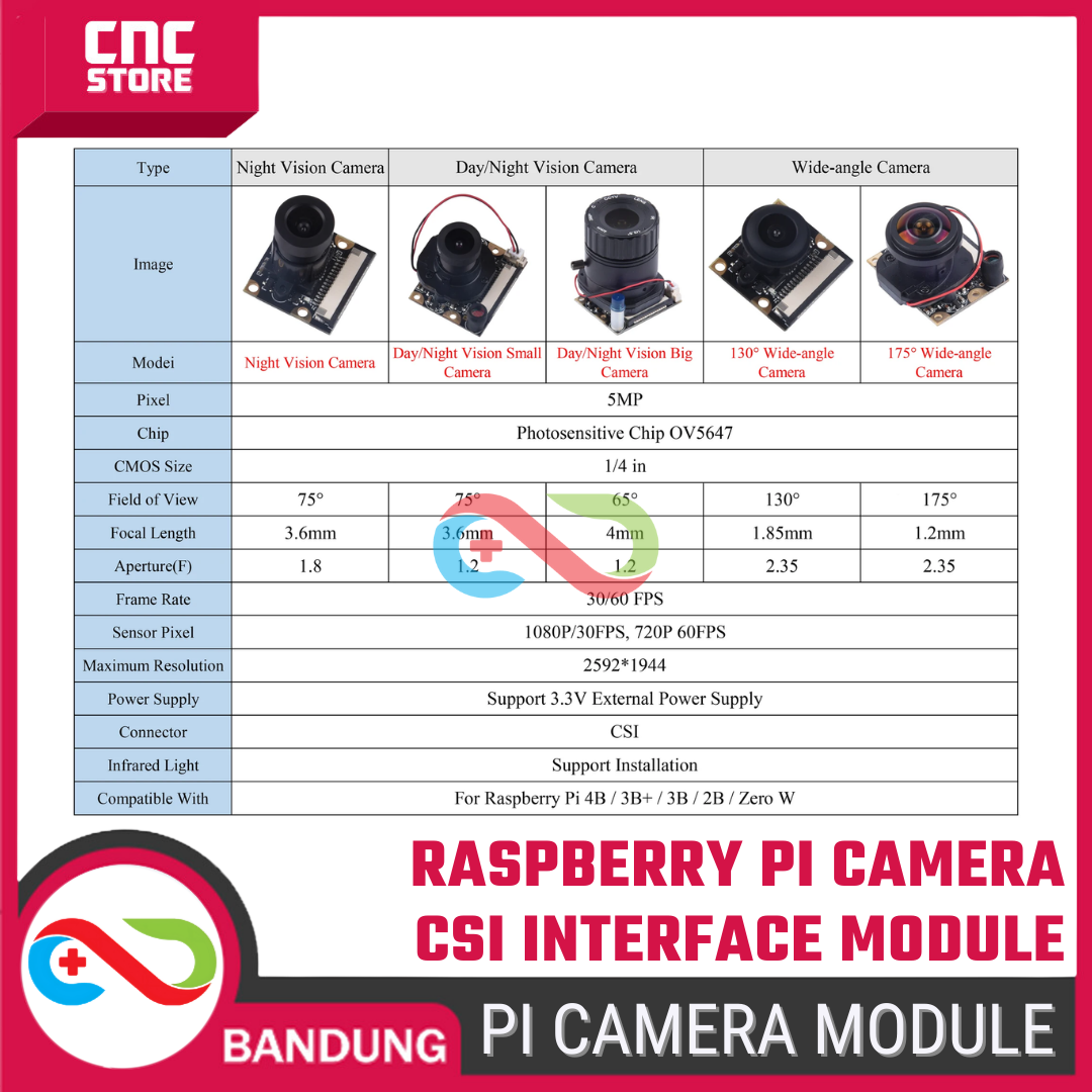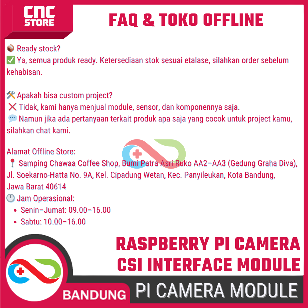 Kamera ini kompatibel dengan Raspberry Pi 5, 4B, 3B, dan Zero, serta menggunakan antarmuka CSI, sehingga transfer data gambar lebih cepat dan stabil dibandingkan USB webcam biasa. Cocok untuk proyek robot vision, smart home, surveillance, dan edukasi STEM. Yuk segera di order, sebelum kehabisan~!
