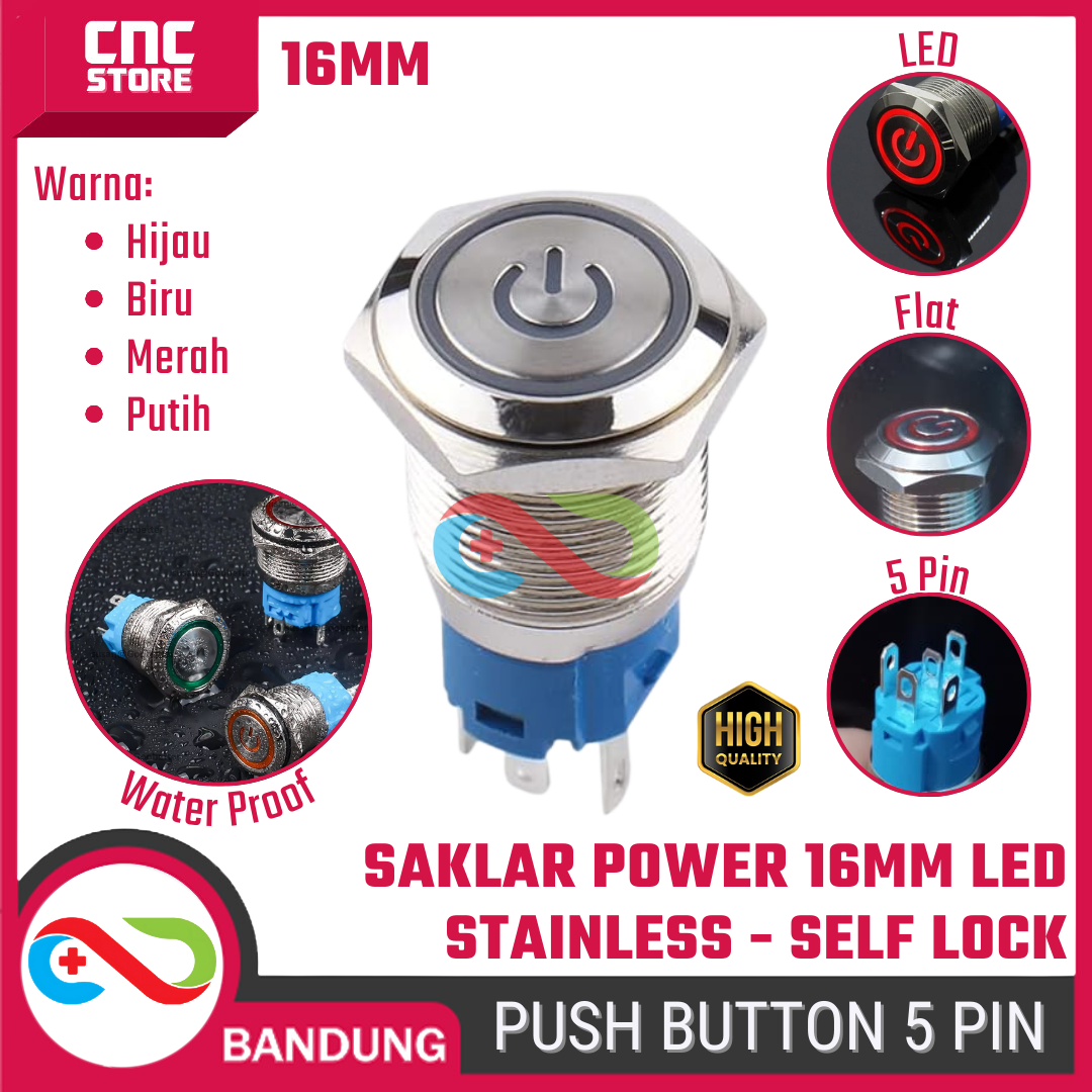 Tombol ini self-lock, artinya sekali ditekan, tetap di posisi ON atau OFF sampai ditekan lagi. Terbuat dari metal stainless steel, membuatnya kuat, tahan lama, dan terlihat premium. LED indikatornya hadir dalam pilihan hijau, biru, merah, dan putih, sehingga kamu bisa langsung tahu kapan alatmu aktif. Sangat cocok untuk proyek elektronik, robotika, maupun panel kontrol custom, tanpa perlu repot menambahkan resistor untuk LED.
