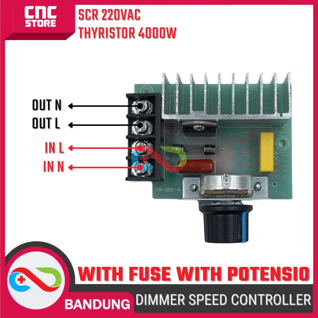 1Pcs?SCR 220V 4000W Dimmer Motor Speed Controller AC + Fuse + Potensiometer