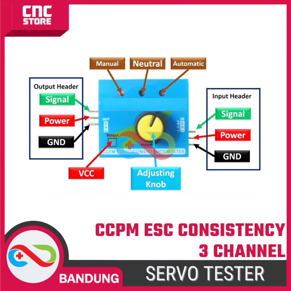 Fitur CCPM (Cyclic Collective Pitch Mixing) dan ESC Consistency memungkinkan kamu untuk mengatur servo pada aplikasi multirotor atau robotika dengan konsistensi yang tepat dan pengujian kecepatan yang mudah. Dengan desain portabel dan praktis, alat ini sangat ideal untuk para penggemar DIY, robotik, atau drone.?
