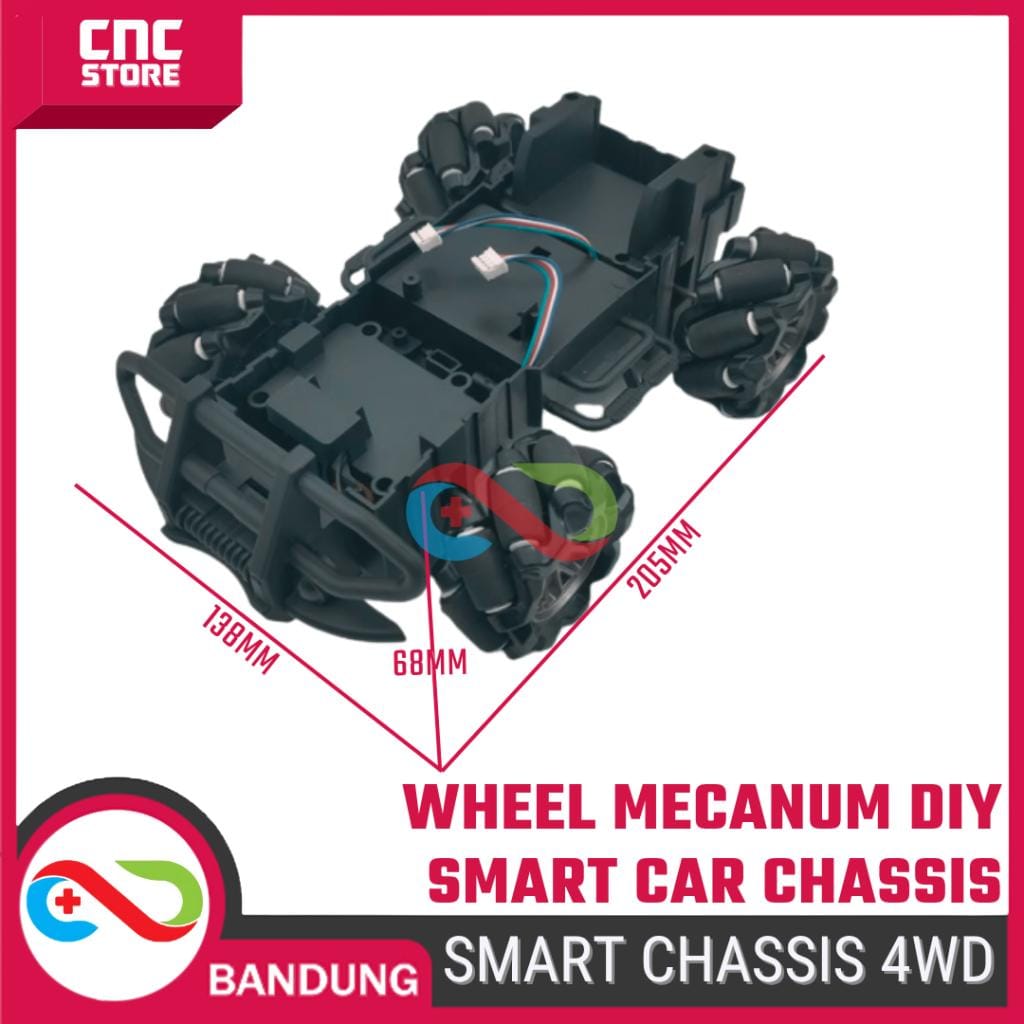 Smart Car Chassis Robot 4WD Wheel Mecanum DIY adalah chassis robot 4 roda yang menggunakan sistem roda mecanum untuk memberikan gerakan omnidirectional (bergerak ke segala arah tanpa perlu memutar). Dengan 4 roda mecanum, chassis ini memungkinkan robot untuk bergerak maju, mundur, ke samping, bahkan berputar di tempat.