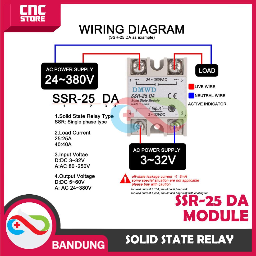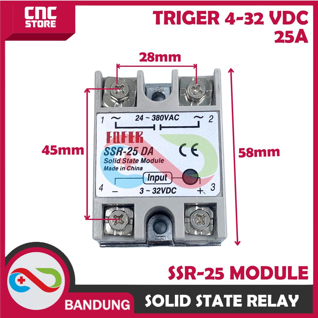 SOLID STATE RELAY SSR-25DA adalah perangkat elektronik yang digunakan untuk mengendalikan beban listrik AC (arus bolak-balik) dengan sinyal kontrol DC (arus searah). Relay padat ini bekerja tanpa menggunakan kontak mekanis dan memberikan keandalan yang tinggi dalam pengendalian beban listrik.