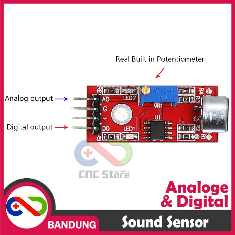 Sensor/mikrofon pendeteksi bunyi. Outputnya ada 2, analog dan digital :