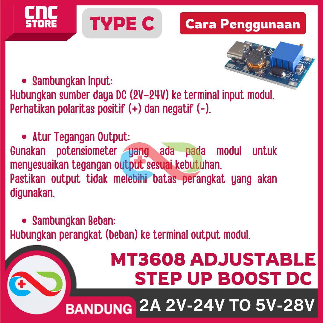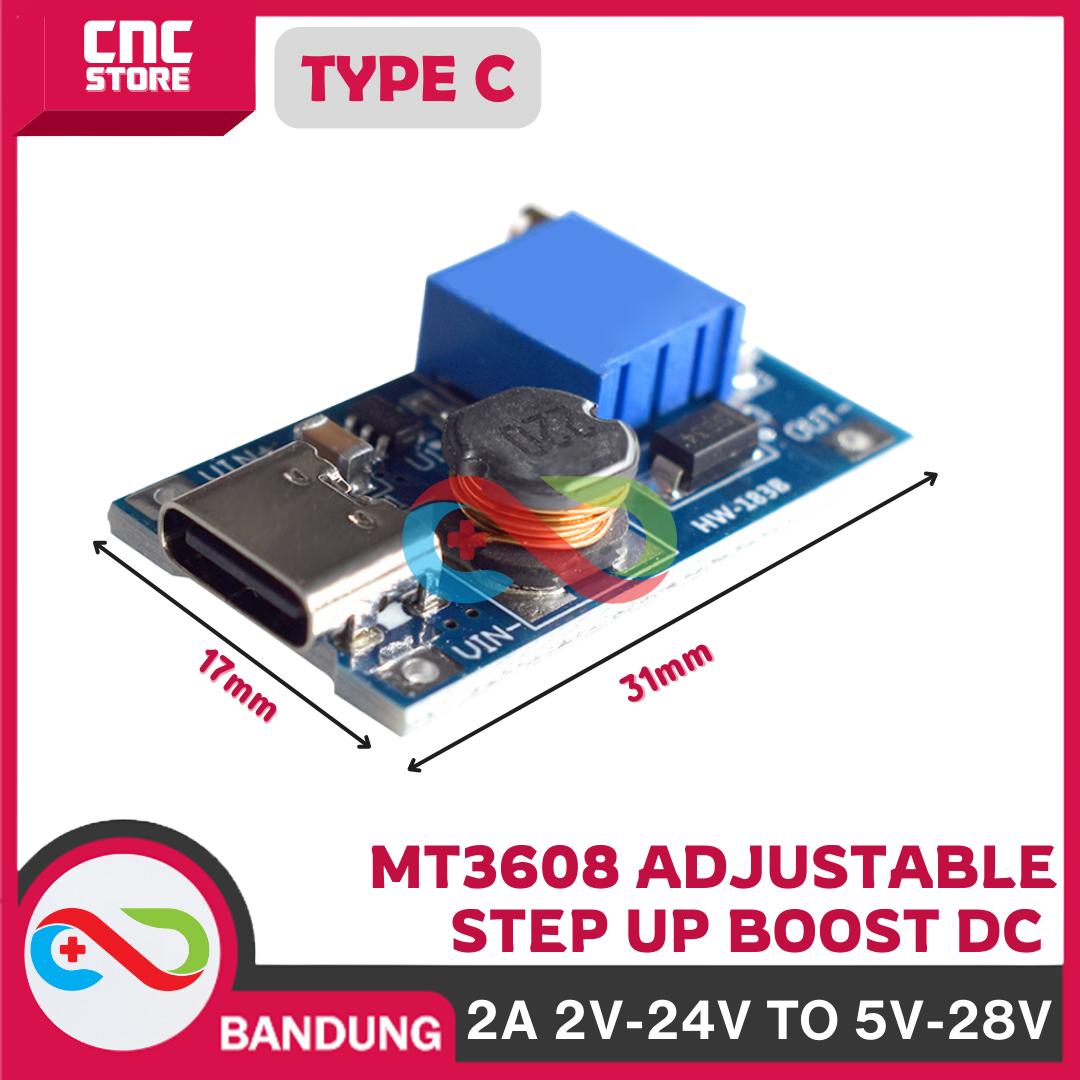 STEP UP MODULE BOOST DC DC TYPE C MT3608 ADJUSTABLE 2A 2V-24V TO 5V-28V