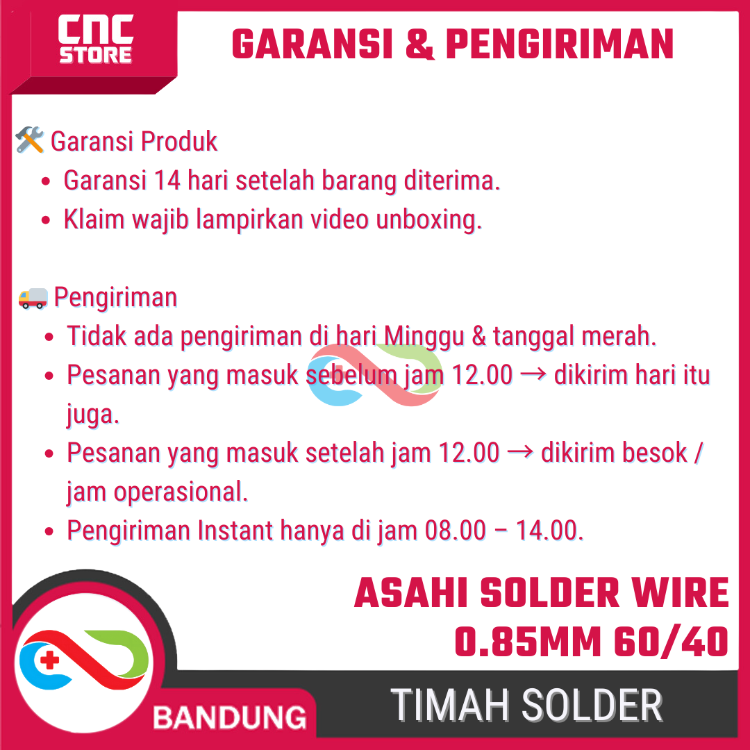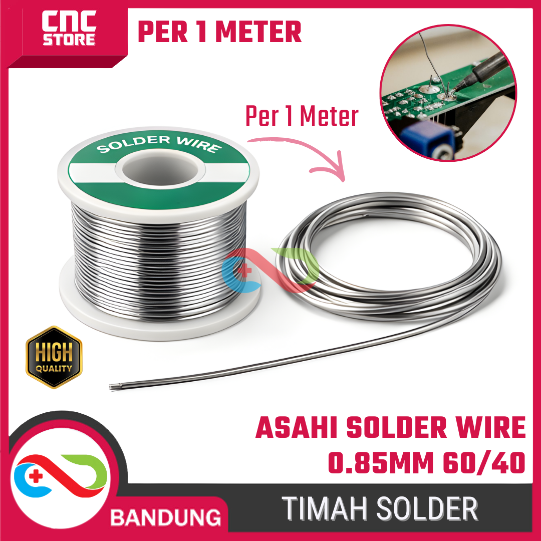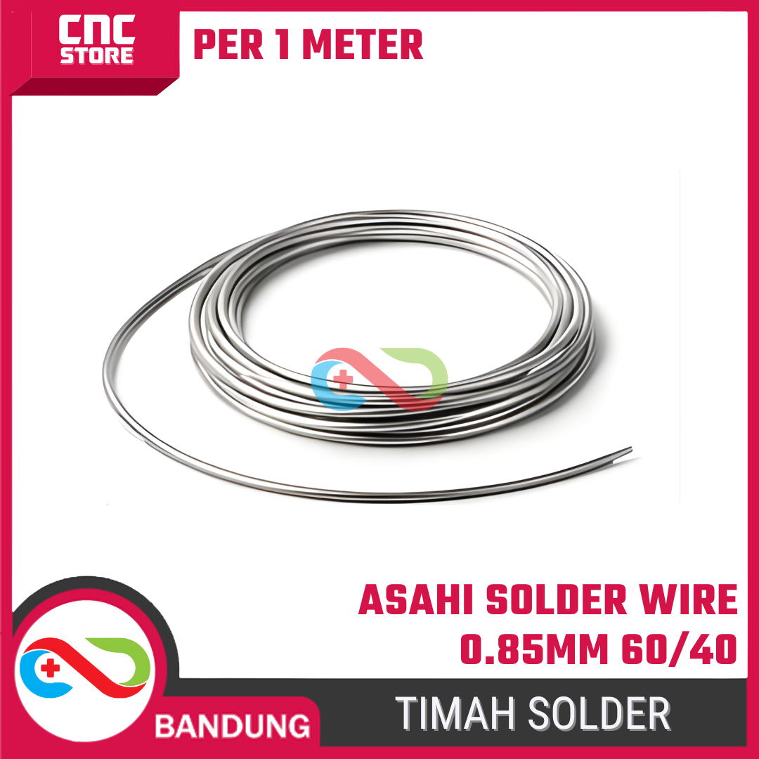 Timah Solder Asahi 0.85mm adalah kawat solder berbahan Sn 60% / Pb 40% (tin–lead alloy) dengan rosin core flux di dalam kawat, dirancang untuk penyolderan elektronika umum.
