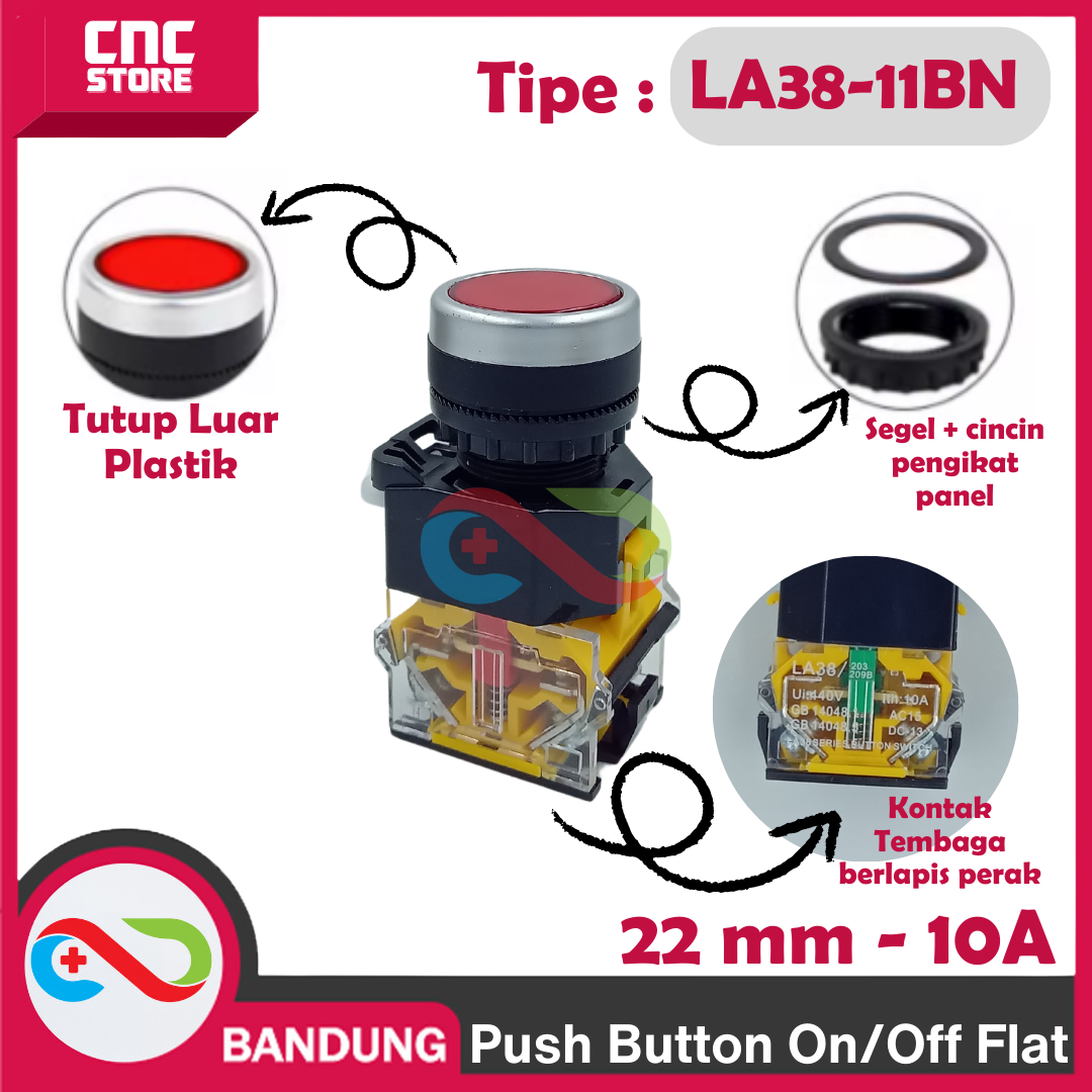 - Tipe Produk: Push Button Self locking (di tekan on, di tekan lagi off)