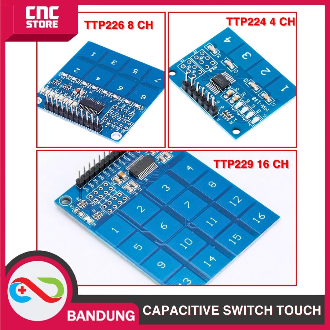 SEN-0200 : TTP226 8 Channel SEN-0201 : TTP224 4 Channel SEN-0202 : TTP229 16 Channel Deskripsi ========== TTP226, TTP224, dan TTP229 adalah modul sensor sentuh kapasitif digital yang dirancang khusus untuk digunakan dengan mikrokontroler lainnya. Sensor ini menggunakan teknologi kapasitif untuk mendeteksi sentuhan manusia pada permukaan logam, plastik, kaca, atau bahan lainnya yang bersifat konduktif. Modul-modul ini sangat cocok untuk berbagai aplikasi seperti antarmuka pengguna sentuh, kontrol elektronik, dan proyek-proyek interaktif lainnya. Spesifikasi =============== TTP226 8 Channel: Jumlah Channel: 8 Antarmuka: I2C (7-bit address: 0x24) Tegangan Operasi: 2.4V hingga 5.5V Konsumsi Daya: 120 A (typical) TTP224 4 Channel: Jumlah Channel: 4 Antarmuka: I2C (7-bit address: 0x21) Tegangan Operasi: 2.4V hingga 5.5V Konsumsi Daya: 120 A (typical) TTP229 16 Channel: Jumlah Channel: 16 Antarmuka: I2C (7-bit address: 0x57) Tegangan Operasi: 2.4V hingga 5.5V Konsumsi Daya: 120 A (typical) Modul TTP226, TTP224, dan TTP229 Digital Capacitive Switch Touch Sensor sangat cocok digunakan untuk membangun antarmuka pengguna sentuh atau kontrol elektronik tanpa kabel. Sensor ini dapat mendeteksi sentuhan pada berbagai bahan dan jarak yang cukup jauh, sehingga memberikan fleksibilitas dalam desain dan implementasi. Anda dapat memilih modul yang sesuai dengan jumlah channel yang dibutuhkan dalam aplikasi Anda. Paket ========= 1 X CAPASITIVE DIGITAL – SESUAI VARIAN