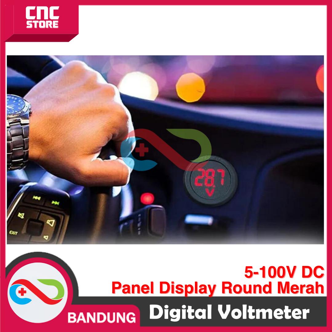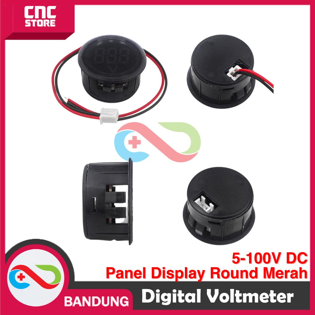 1?X VOLTMETER DIGITAL VOLTMETER BULAT BOX PANEL DISPLAY 5-100V DC ROUND MERAH