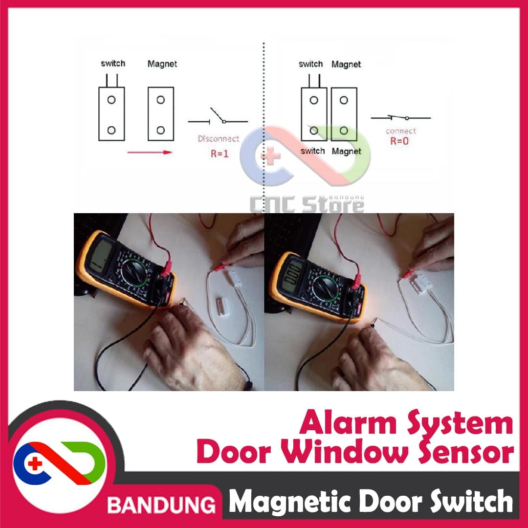 Saklar magnetic ini bekerja berdasarkan medan magnet. Jika kedua bagian saling berjumpa, maka kedua kabel akan terhubung (Resistansi = 0). Dan jika kedua bagian terpisah, maka kedua kabel akan terputus. Saklar ini dapat digunakan untuk mendeteksi adanya bukaan pada pintu/jendela/laci/brankas/lemari sehingga dapat memicu alarm atau nada salam selamat datang pada tamu/pengunjung.