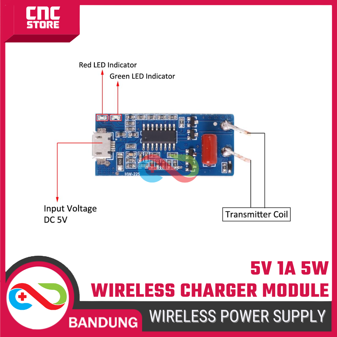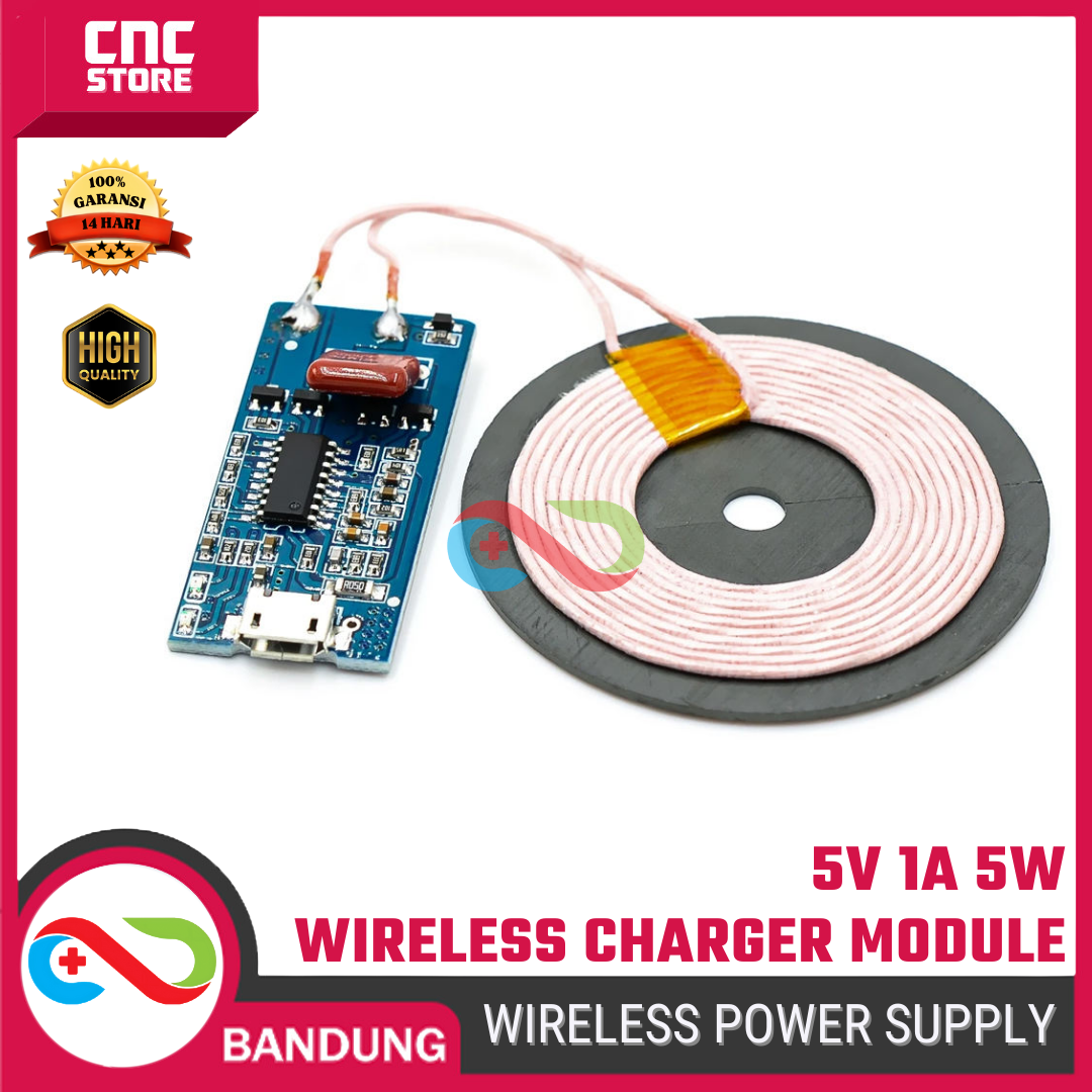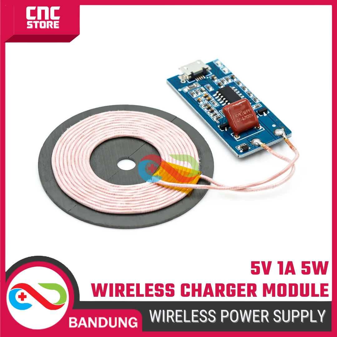 Wireless Power Supply 5V 1A 5W adalah modul pemancar daya nirkabel berbasis induksi elektromagnetik yang digunakan untuk mengisi daya perangkat yang mendukung wireless charging (Qi).