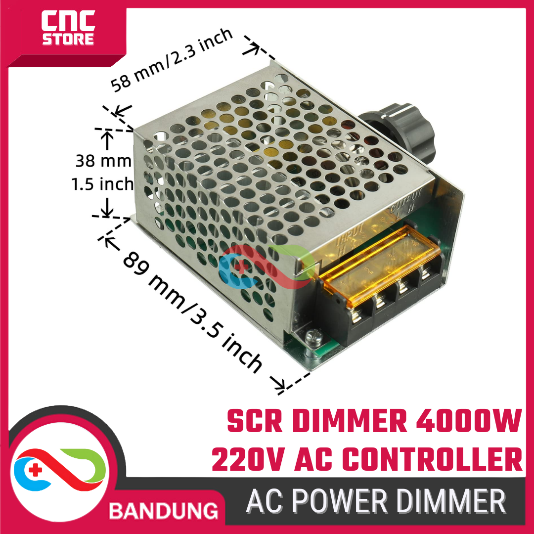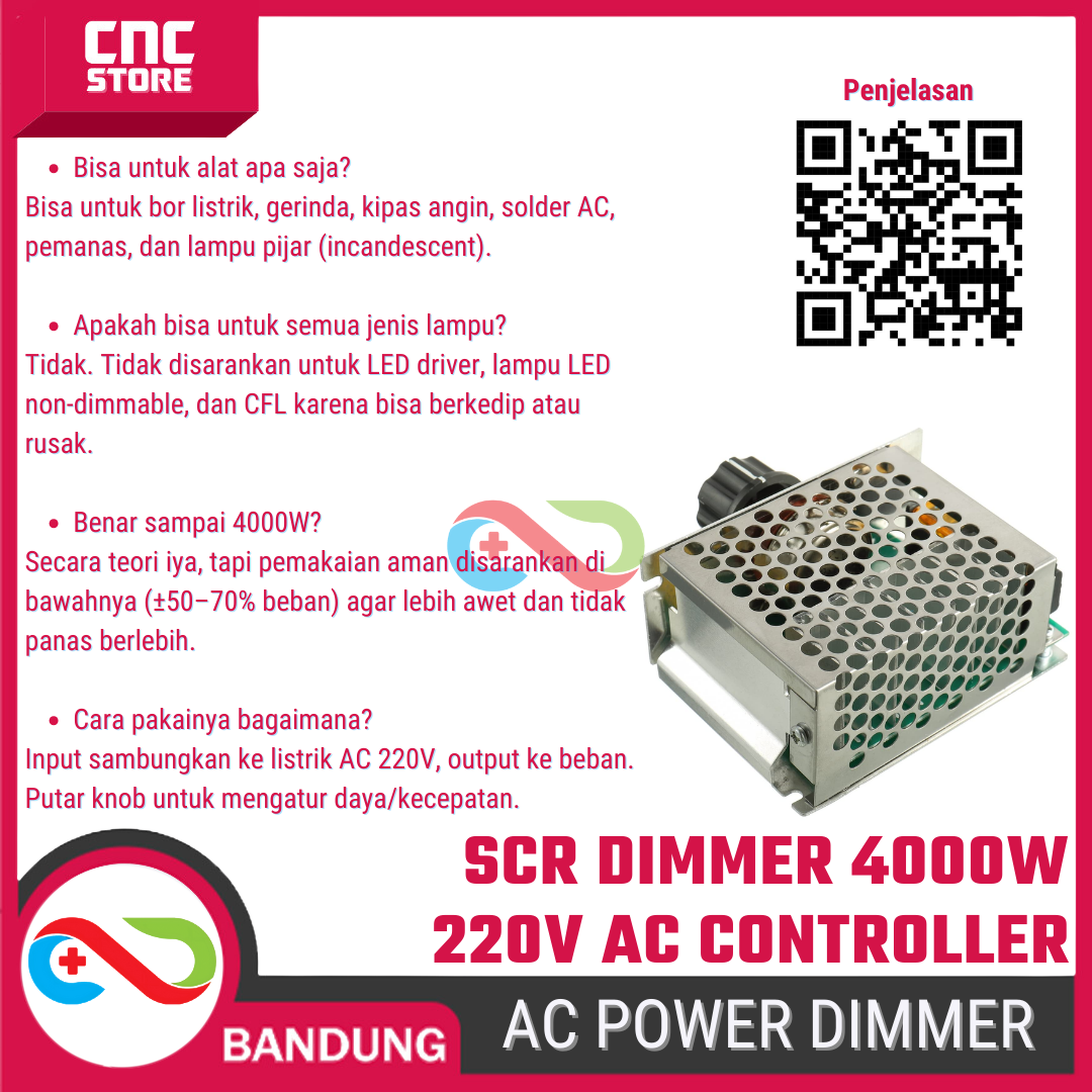 Dimmer SCR 220V AC ini menggunakan prinsip phase angle control berbasis SCR / Triac (thyristor) untuk mengatur besar daya yang masuk ke beban AC.