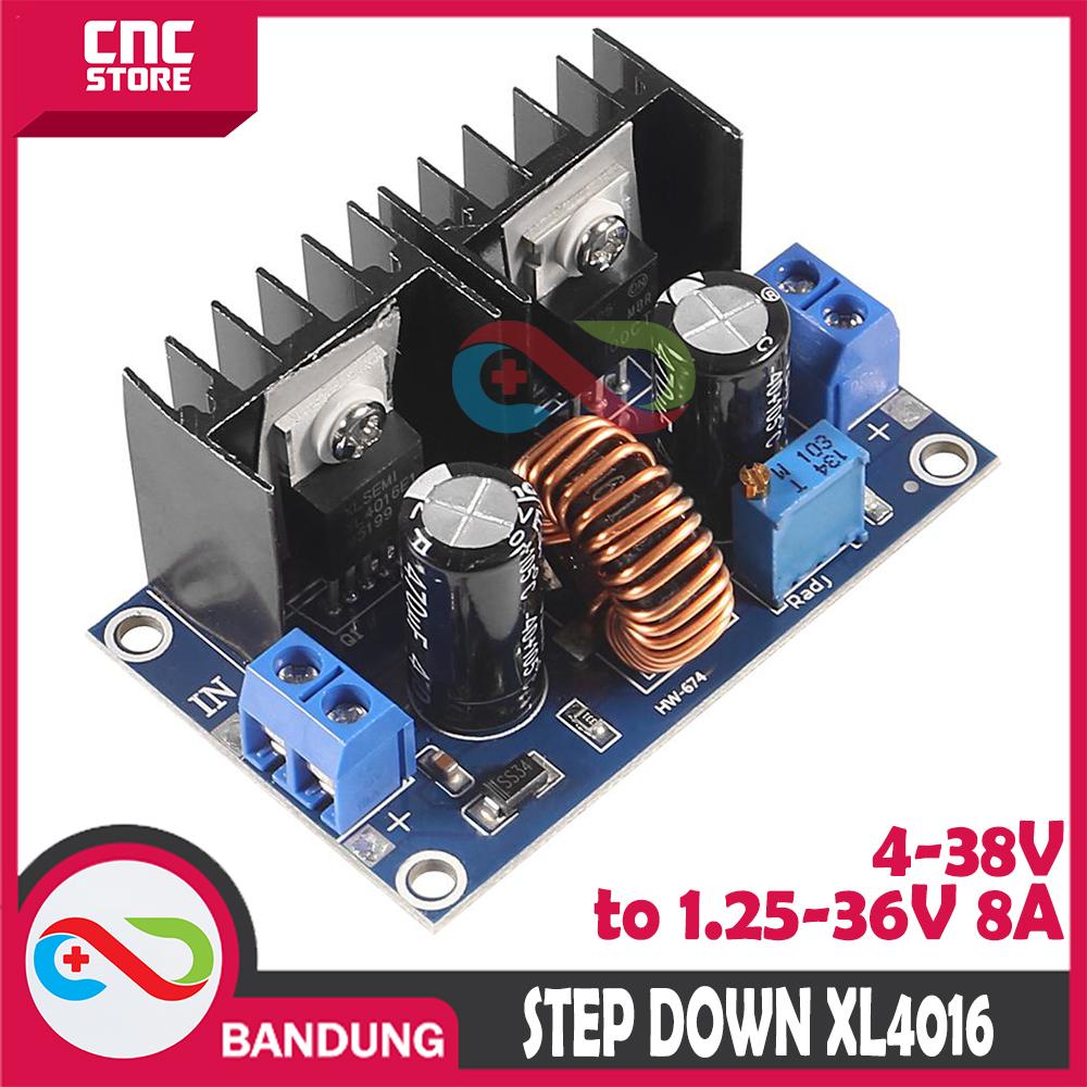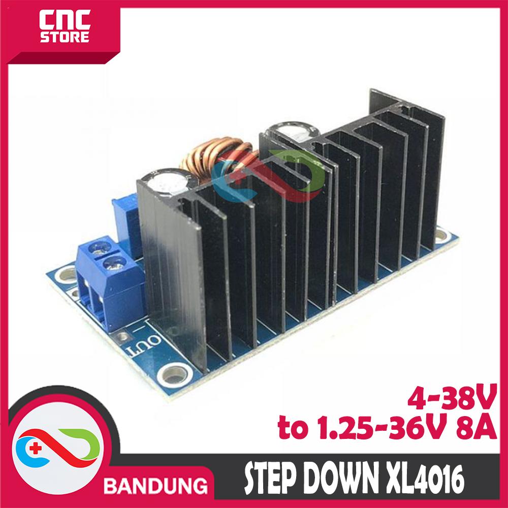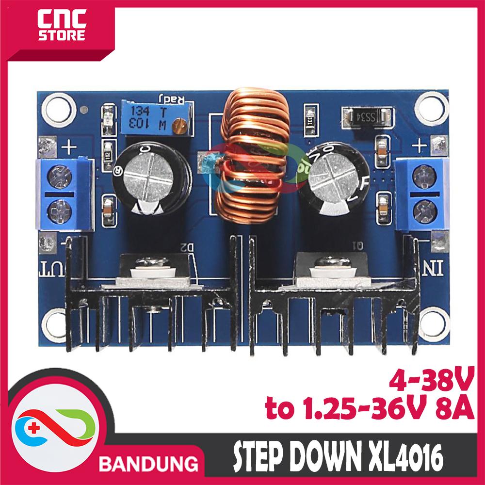 Modul step down ini memiliki fungsi menurunkan tegangan . Jadi bisa kita atur deh besar tegangannya sesuai dengan yang kita inginkan. DC-DC Buck Module High Power DC Voltage Regulator 8A With Regulator XL4016E1 dan modul ini dapat menangani arus 8A. Modul ini membantu Anda memberi daya pada beban daya tinggi dengan tegangan stabil.