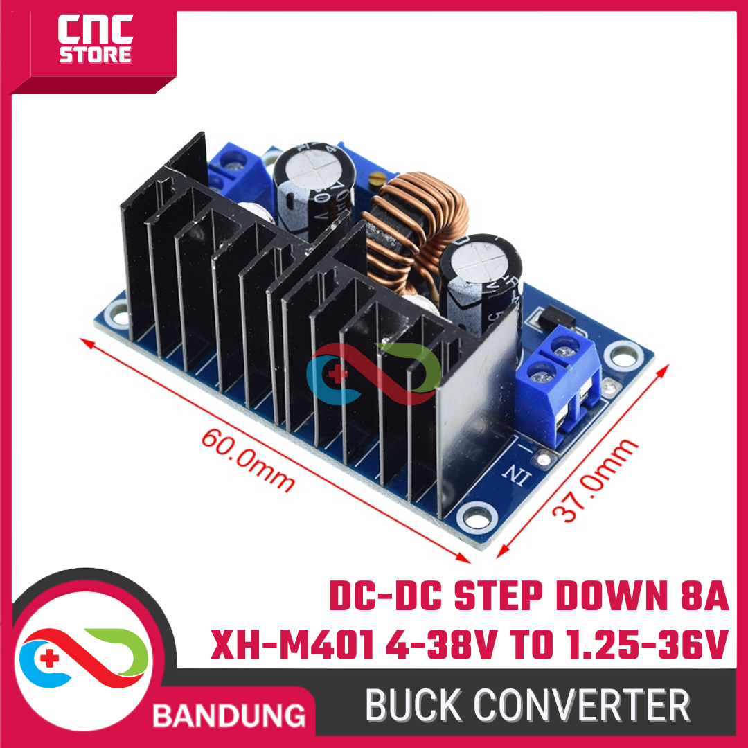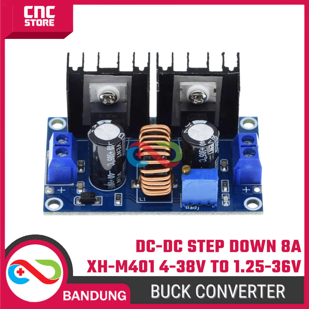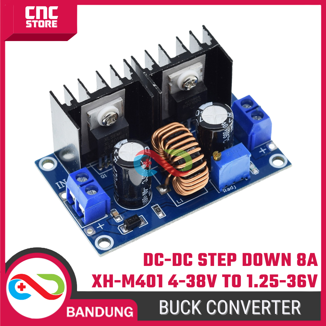 Modul Step Down (Buck Converter) XL4016 / XH-M401 adalah konverter DC-DC berdaya tinggi untuk menurunkan tegangan dari 4–38V ke 1.25–36V dengan arus output hingga 8A.