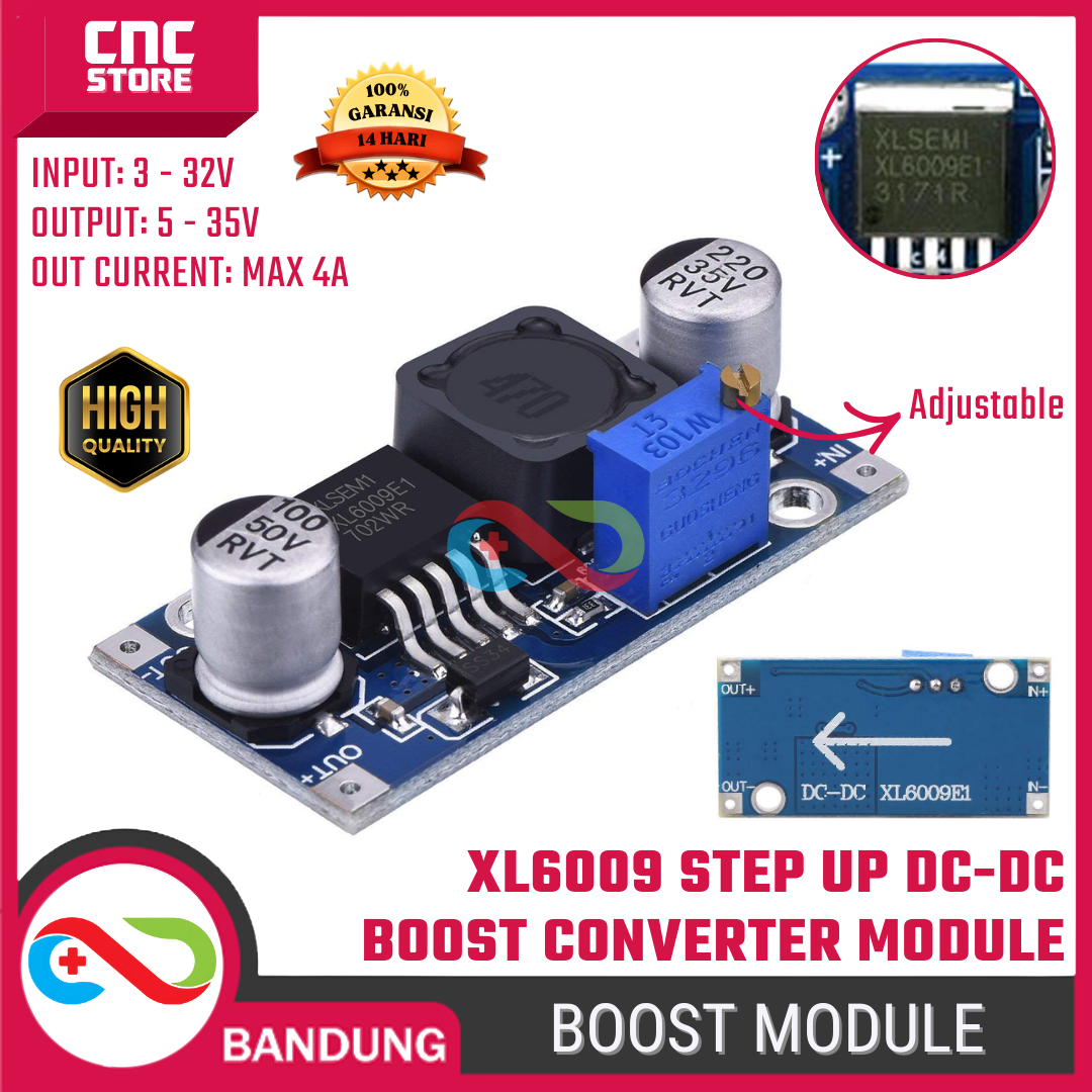 Nah… modul XL6009 Step Up ini ibarat “steroid” buat listrik kamu. Masukin tegangan kecil → keluar tegangan lebih besar, dan STABIL!