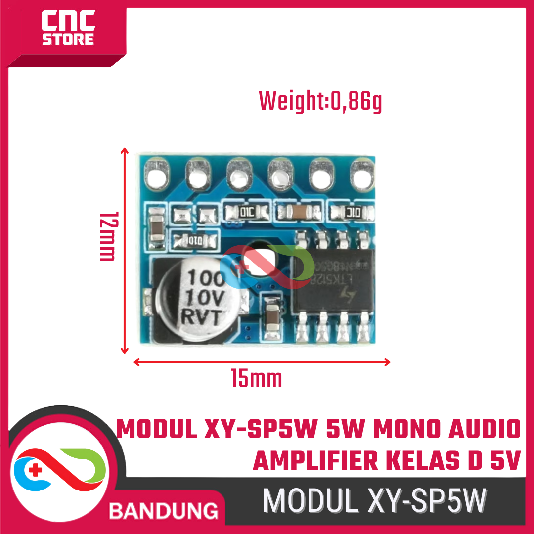 XY-SP5W Mono 5W Mini Power Amplifier adalah modul amplifier kelas D yang menghasilkan suara jernih dan rendah distorsi. Modul ini mendukung 5W output dengan tekanan suara tinggi dan memiliki built-in amplifier yang memungkinkan kamu untuk menghubungkannya langsung ke speaker tanpa amplifier tambahan.