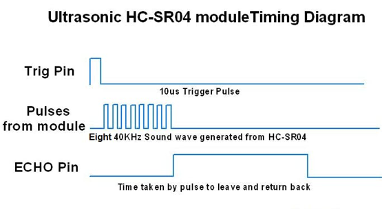 Untuk menghasilkan gelombang ultrasonik, kita perlu mengatur Pin Triger ke keadaan Tinggi selama 10 µs . Ini akan mengirimkan gelombang suara 8 siklus yang akan merambat dengan kecepatan suara dan akan diterima di Pin Gema. Pin Gema akan mengeluarkan waktu dalam mikrodetik yang ditempuh gelombang suara tersebut.